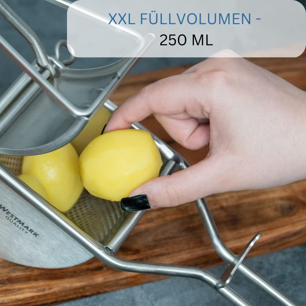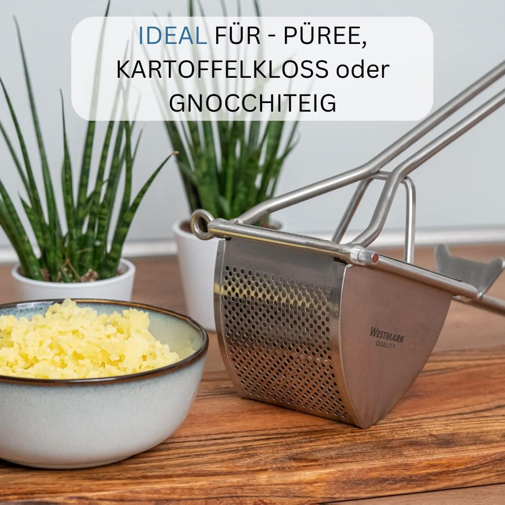 - Lieferumfang: 1 x Westmark Kartoffelpresse Triangel, Masse: 30 x 11,7 x 14 cm und 1 x Sparschäler Famos, 15,7 x 4,1 x 0,7 cm, 5 Jahre Garantie, Material: Edelstahl, Stahl, verchromt, 612622E7