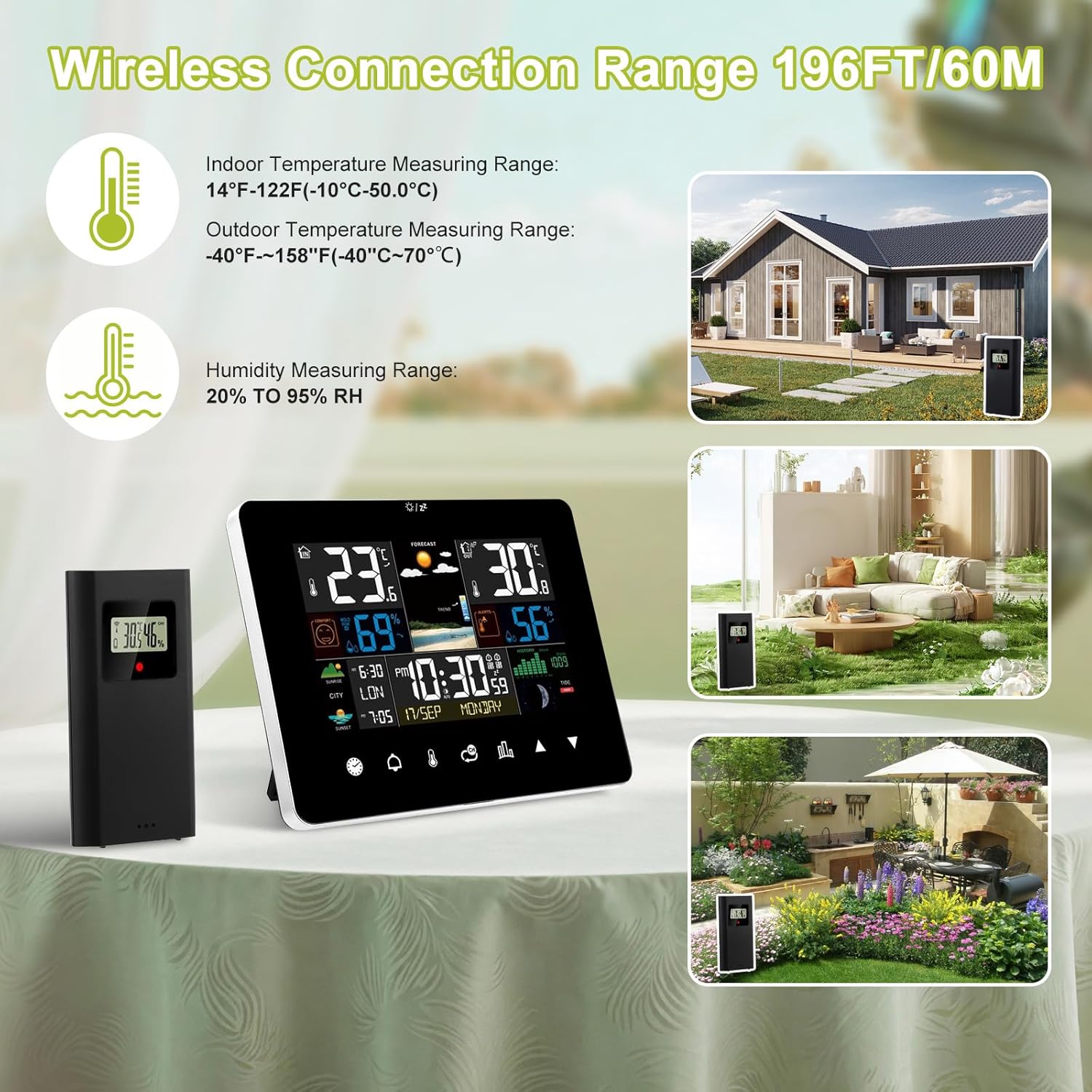 - 【Drahtlossystem | Stabile Übertragung】: Die wetterstationen innen und aussentemperatur funk mit wettervorhersage empfängt Signale von mehreren Sensoren in einer Reichweite von bis zu 60 Metern. Das Signal durchdringt zuverlässig Wände und deckt