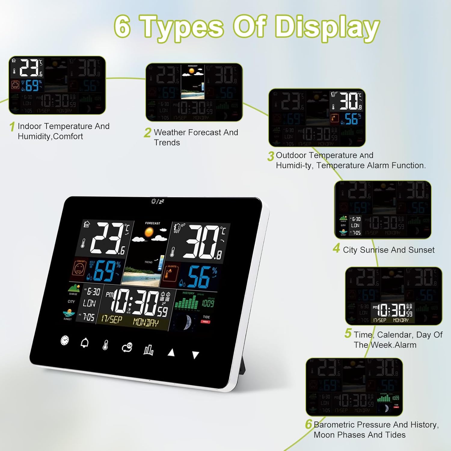 - 【24-Stunden-Präzise Vorhersage | Gesundheits- und Komfortüberwachung】: Die funkwetterstationen mit aussensensor nutzt intelligente Druckanalyse, um Wetteränderungen in den nächsten 12 bis 24 Stunden zuverlässig vorherzusagen und bietet so eine