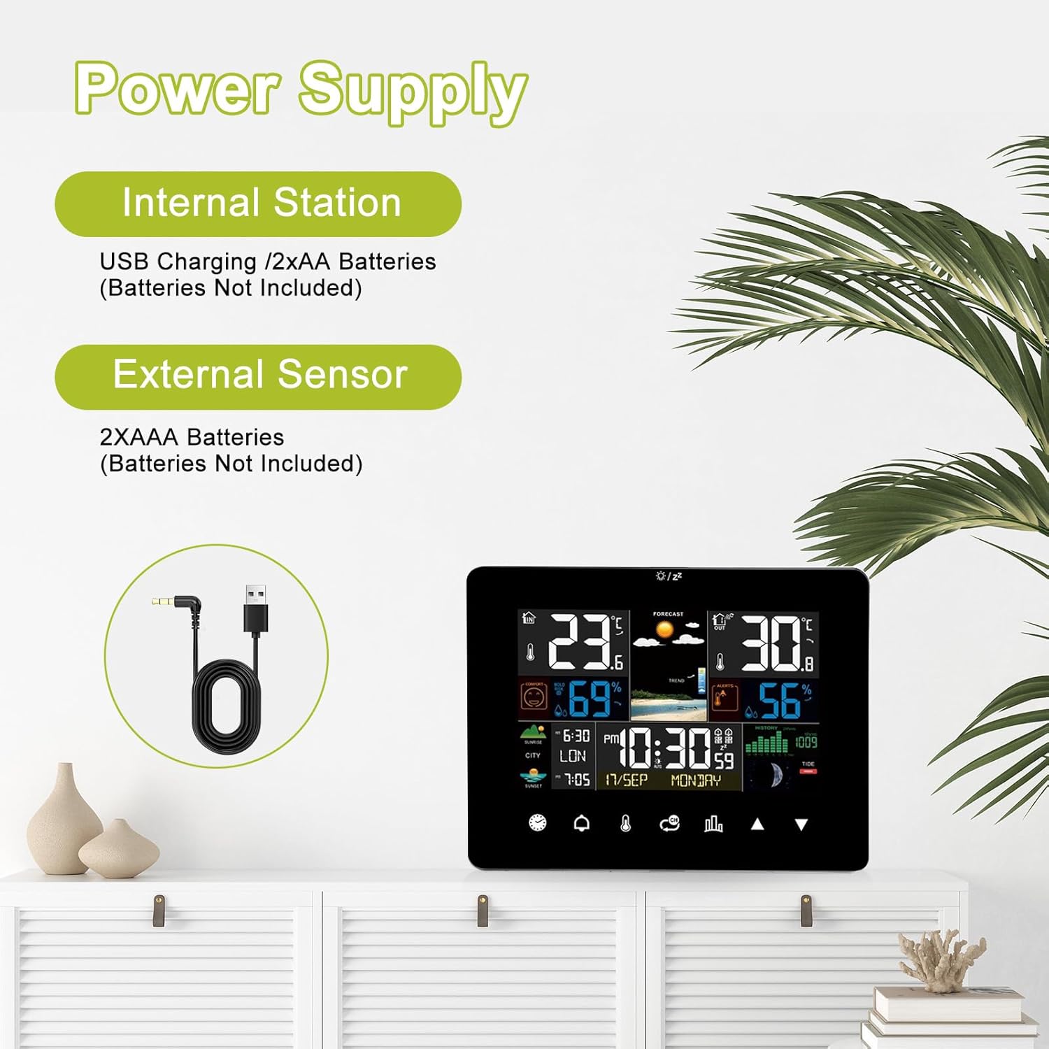 - 【Multifunktionale intelligente Warnung | Zwei Stromversorgungsoptionen】: Die wetterstation funk verfügt über einen Wecker sowie Warnmeldungen zu Temperatur-, Feuchtigkeits- und Druckschwellenwerten und benachrichtigt Sie rechtzeitig über