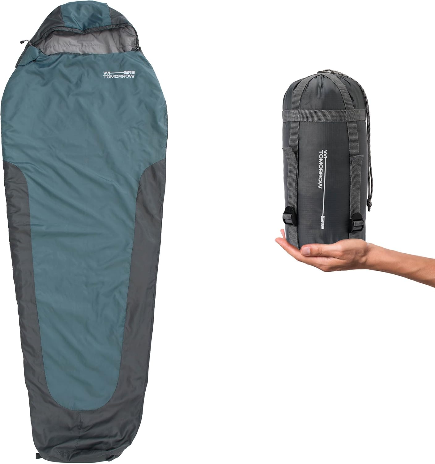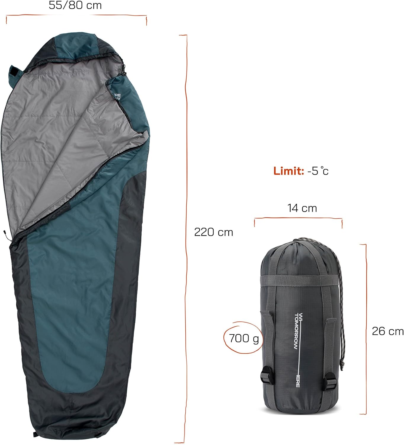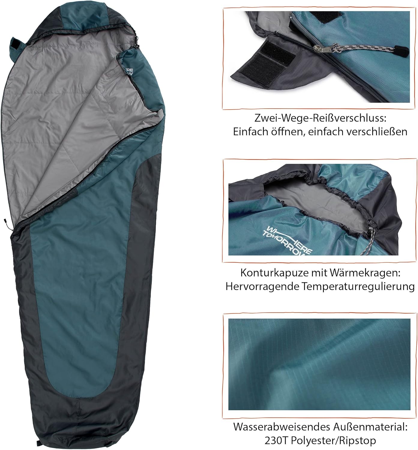 - WHERE TOMORROW OUTDOOR SCHLAFSACK: Perfekter Schlaf unterwegs, beim Camping im Zelt oder auf Reisen; ausgestattet mit nicht klemmendem Zweiwege-Reissverschluss - Hervorragende Wärmeregulierung - Länge 220 cm, Breite am Kopfende 80 cm, am Fussende 50