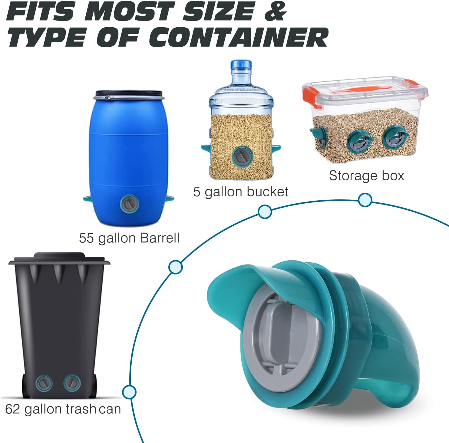 • Vielseitiges Design: Der Futterspender besteht aus BPA-freiem Material in Lebensmittelqualität und passt auf die meisten Behälter, einschliesslich Eimer, Fässer, Mülleimer und Tröge.