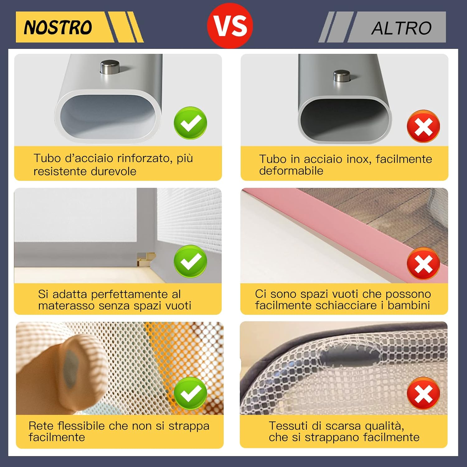 - 【Sicheres, nahtloses Design】 Dickere Stahlrohre zur Stärkung der Belastung; Nahtloses Pressdesign, fest auf die Matratze drücken, wirklich nahtlos zwischen Geländer und Matratze, um zu verhindern, dass das Baby in Kopf oder Händen und Füssen