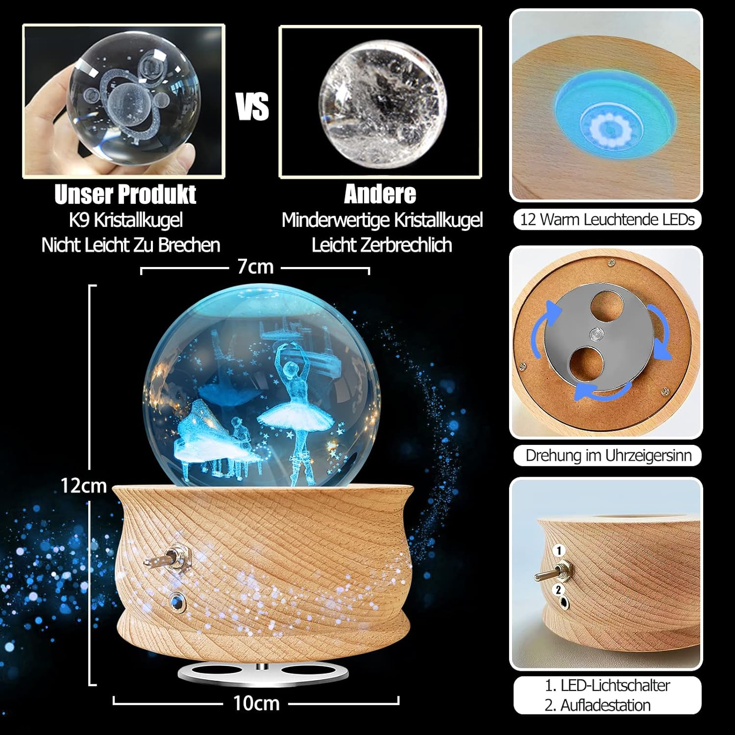 - 💖Kristallkugel Spieluhr Besteht Aus K9-Kristall. Ein dreidimensionales Bild wird in eine transparente und schöne hochwertige Kristallkugel verarbeitet. Künstlerische Licht- und Klangskulptur! Wir schützen Ihre wertvollen Erinnerungen und Ihre Zeit