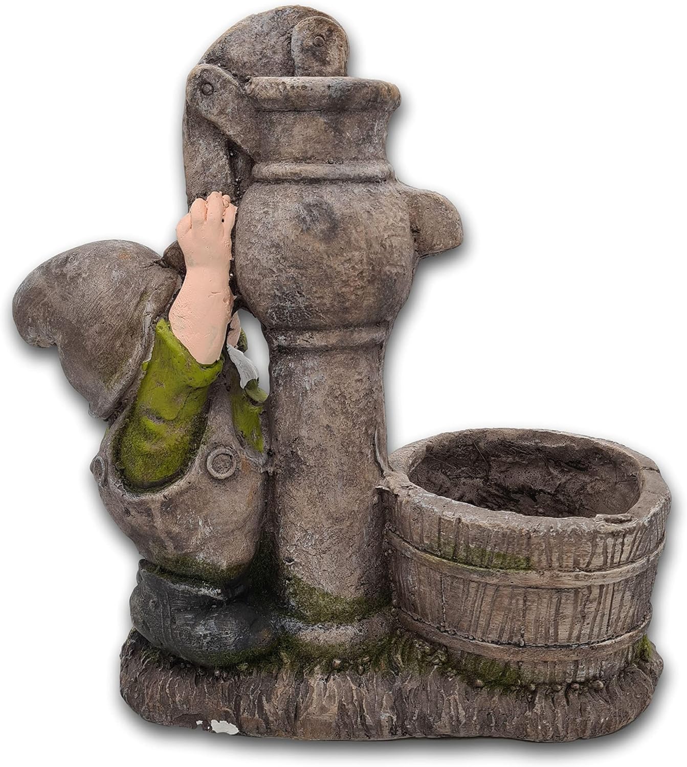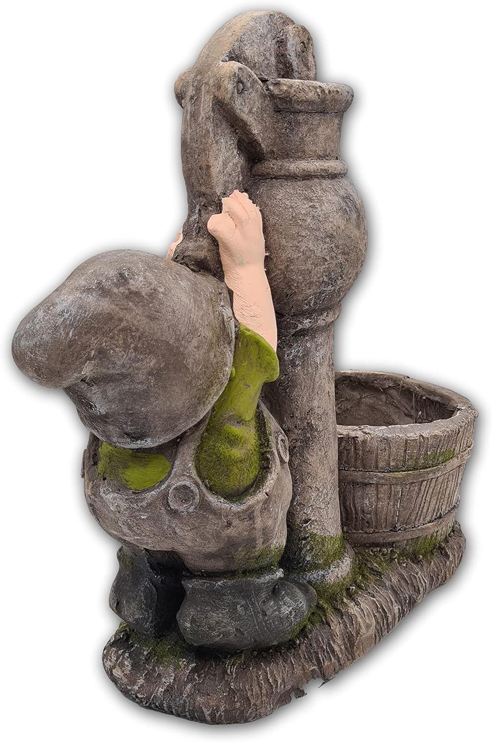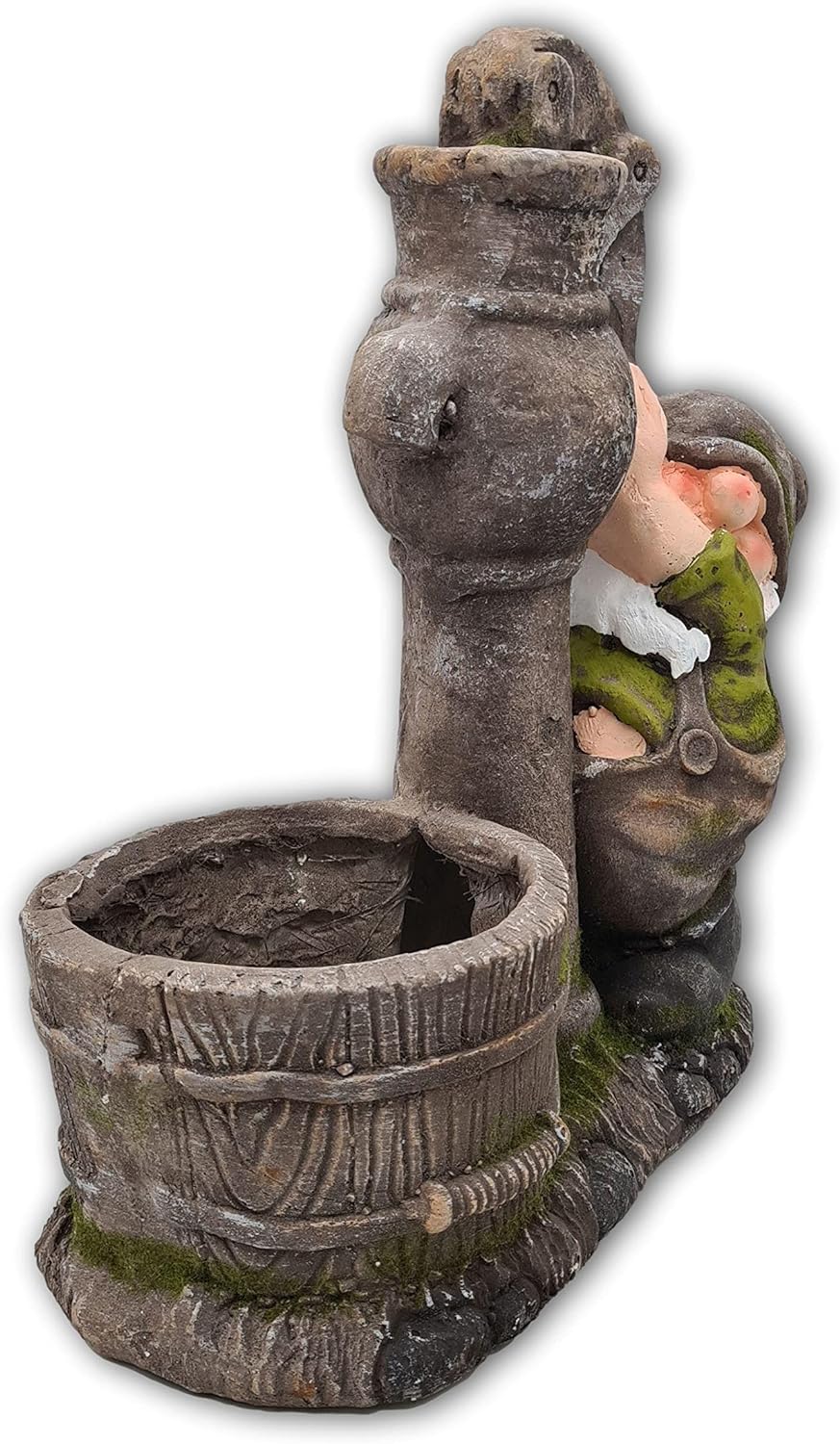 • Masse: ca. 37,5 x 17 x 38 cm, Material: Polyresin. Der kleine Wichtel pumpt Wasser in den bereitgestellten Trog, der sich wegen seiner Grösse gut mit eigenen Pflanzen dekorieren lässt und so für Abwechselung im Beet oder am Wegrand sorgt.