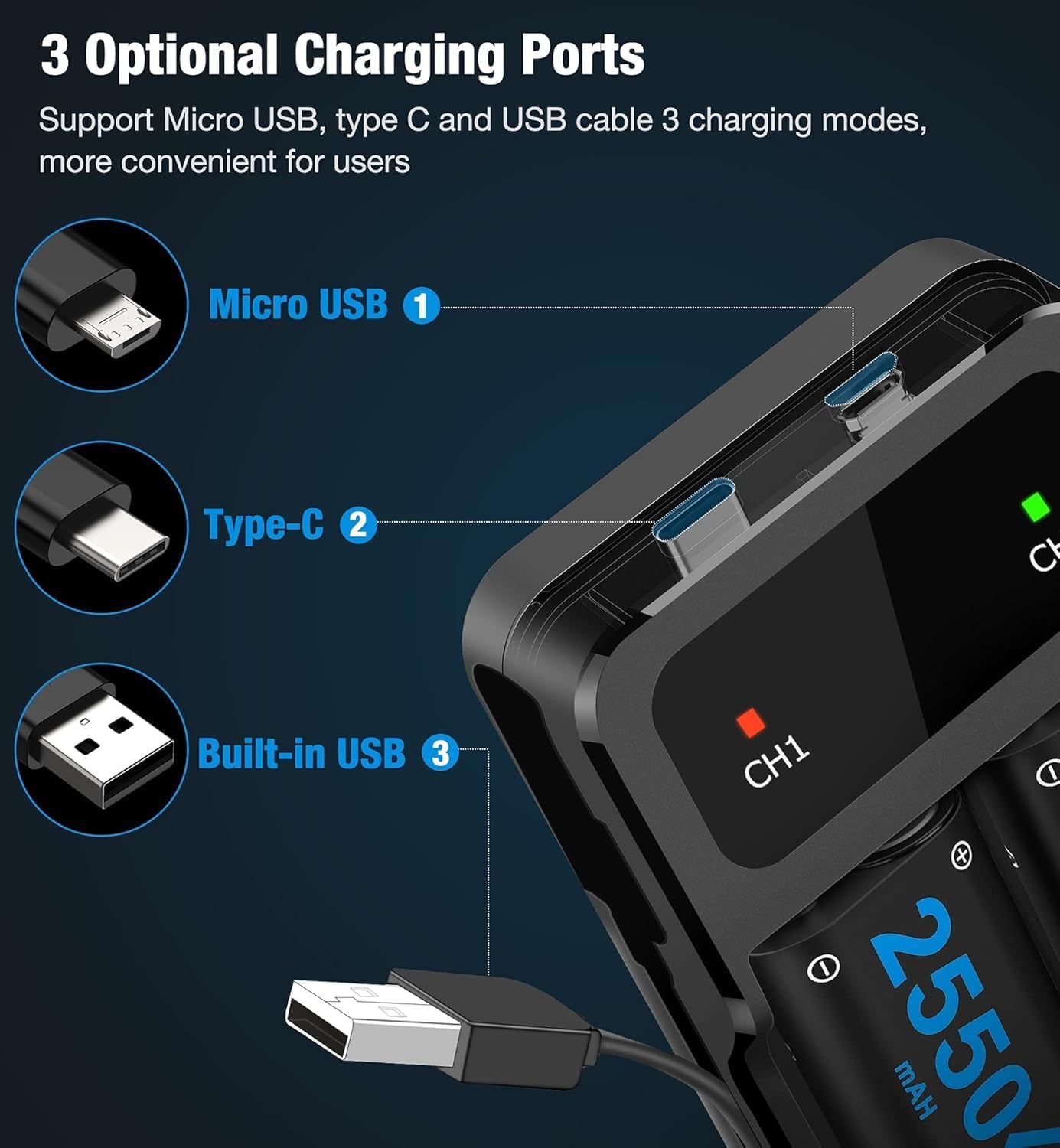 - 25H PLAYTIME FOR XBOX GAME: Diese Batterien für Xbox unterstützen 2x5520mWh(2550mAh) Batterien mit hoher Kapazität, die gleichzeitig aufgeladen werden, für bis zu 25 Stunden langes Spielen mit einer einzigen Batterie. Der Controller-Akku für die