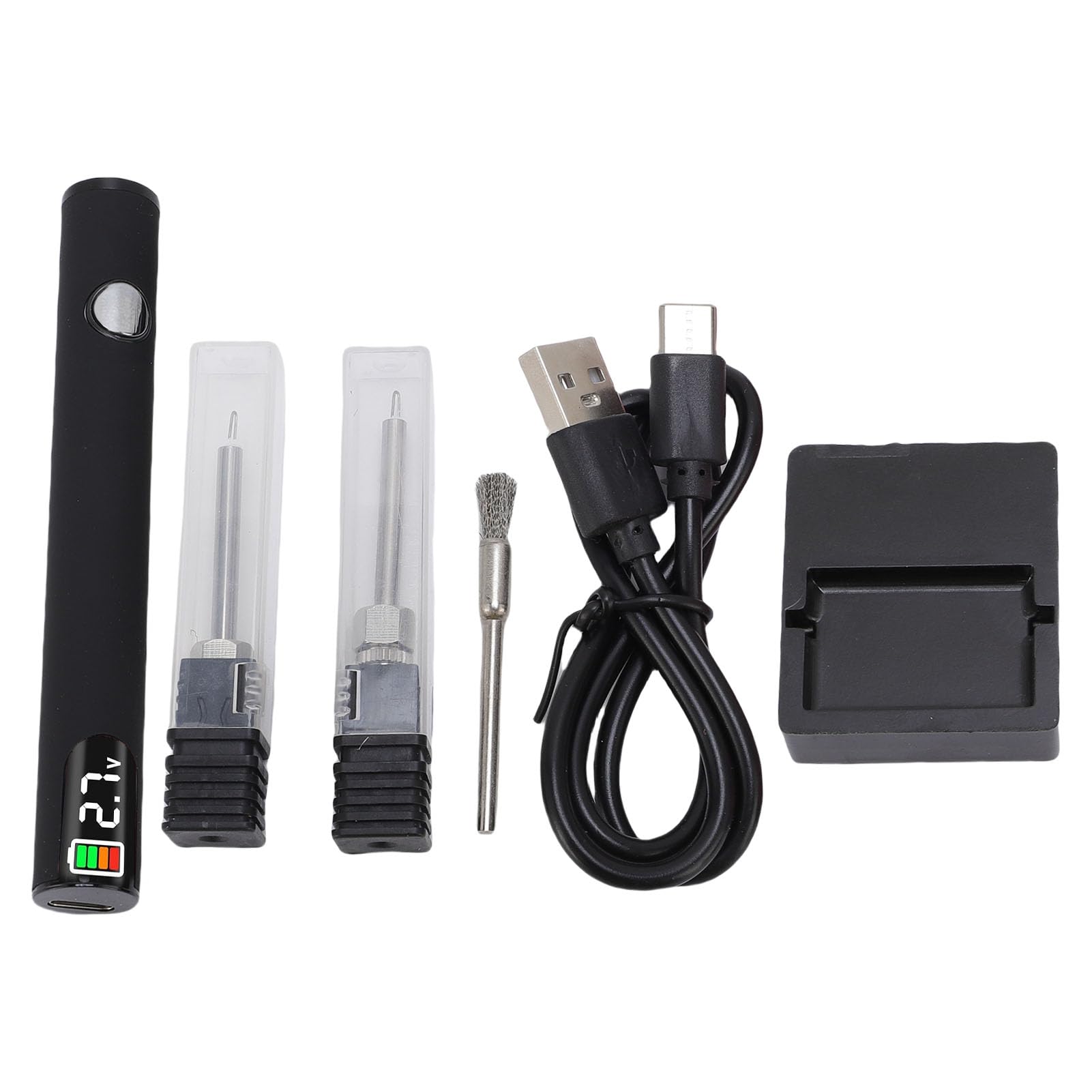 - PAKETLISTE: Das Drahtbrennstift-Set enthält 1 Drahtbrennstift, 1 Ständerwerkzeug, 2 austauschbare Spitzen und 1 Wischbürste, mit denen Sie die Lebensdauer des Brennstifts verlängern können, 1 Werkzeugständer zum Kühlen der Spitzen und zum