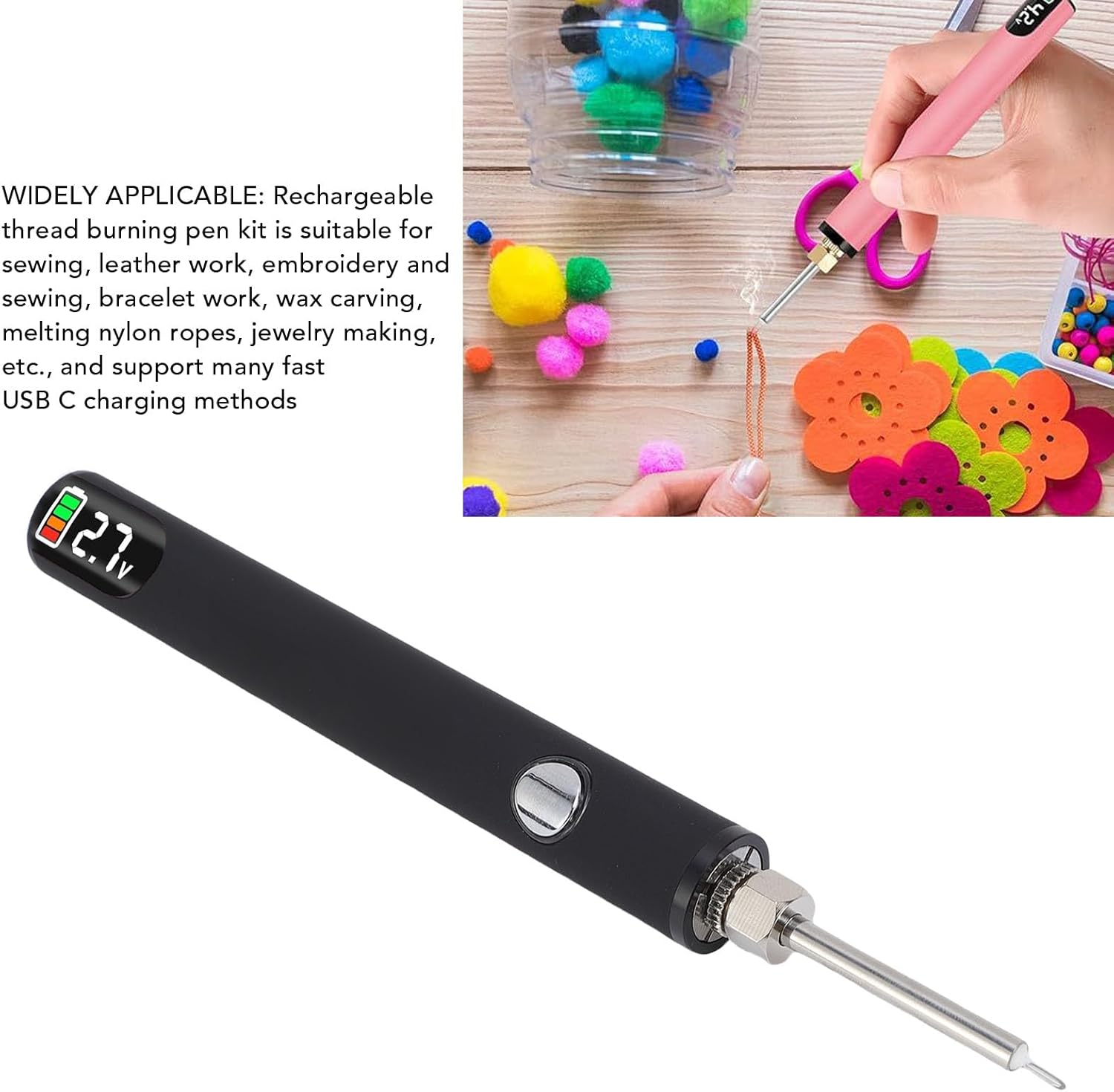 - Weit verbreitet anwendbar: wiederaufladbares Fadenbrennstift -Kit eignet sich zum Nähen, Lederarbeiten, Stickereien und Nähen, Armbandarbeiten, Wachsschnitzen, Schmelzen von Nylonseilen, Schmuckherstellung usw. und unterstützt viele schnelle USB -C