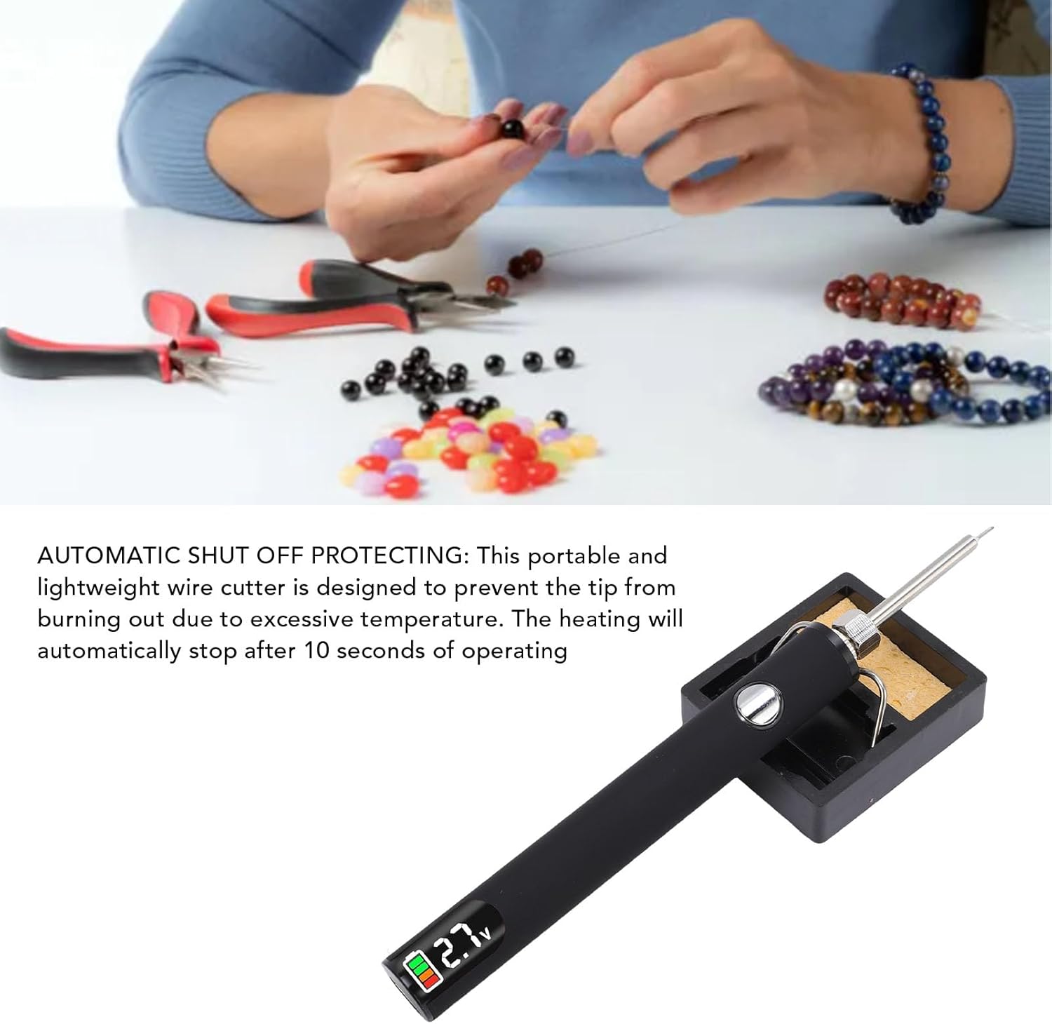 - Automatischer Abschlussprogramm: Dieser tragbare und leichte Drahtschneider ist ausgelegt, um zu verhindern, dass die Spitze aufgrund übermässiger Temperatur ausbrennt. Die Heizung hält nach 10 Sekunden des Betriebs automatisch an