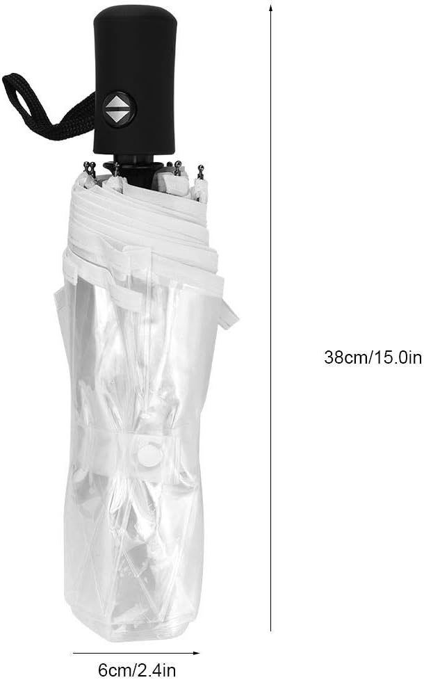 PRODUKTBESCHREIBUNGEN Funktionen: Der Regenschirm hat einen automatischen Öffnungs- und Schliessmechanismus, Einhandbedienung, einfach den Knopf einmal drücken, automatisch öffnen und erneut drücken und den Regenschirm sofort zusammenklappen, um ihn zu schliessen.Die Einhandbedienung hält Sie trocken, wenn Sie zu beschäftigt sind. Hochwertiges Material, spezielle Beschichtung und rutschfester Gummigriff machen es besser als andere kompakte Regenschirme.Unser Griff ist auch ausgewogen, um einen möglichst komfortablen Gebrauch zu ermöglichen.Hochwertiges Design, langlebig und windstabil. Winddichte Struktur, unser Regenschirm besteht aus 8 verstärkten Glasfaserrippen, was bedeutet, dass der Regenschirm bei starkem Wind nicht bricht. Dieser herausragende Regenschirm ist die perfekte Kombination aus Tragbarkeit, Schutz und Haltbarkeit.Klein genug für Rucksack, Gepäck, Auto und mehr.Das mini, tragbare und faltbare Design ist perfekt für Männer, Frauen, Teenager und Kinder. Geeignet für eine Vielzahl von Outdoor-Aktivitäten wie Golf, Camping, Wandern, Rucksackwandern, Angeln oder das tägliche Leben.Tragen Sie diesen automatischen Regenschirm, um Männer und Frauen vor Regen zu schützen. Spezifikation: Bedingung: 100% nagelneu Elementtyp: Regenschirm Material: ABS + Eisen Farbe: Transparent Falzgrösse: Ca.28 x 6 cm Paketgewicht: Ca.351 g Paketliste: 1 x Regenschirm Hinweis: 1. Bitte erlauben Sie 0-1 cm Fehler aufgrund manueller Messung.Vielen Dank für Ihr Verständnis. 2. Die Monitore sind nicht gleich kalibriert. Die auf den Fotos angezeigte Objektfarbe unterscheidet sich möglicherweise geringfügig vom tatsächlichen Objekt.Bitte nehmen Sie die echte als Standard.