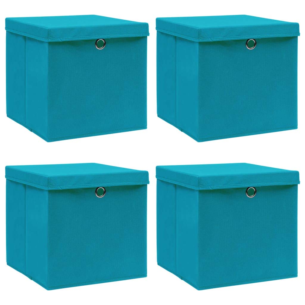 • 🗃️【Mehrere Farb- und Grössenoptionen】Farbe: Babyblau. Material: Vliesstoff (100% Polyester). Masse: 32 x 32 x 32 cm (L x B x H). Zusammenklappbar. Inkl. Deckel. Lieferung enthält:. 4 x Aufbewahrungsbox.
