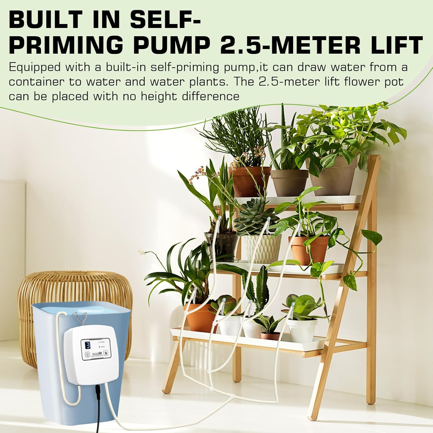 - Eingebaute selbstansaugende Pumpe mit einem Kopf von 2,5 Metern: Die eingebaute selbstansaugende Pumpe kann Wasser aus dem Behälter zu Wasser und Wasserpflanzen ziehen, und es gibt keine Notwendigkeit, sich um Höhenunterschiede zu kümmern, wenn