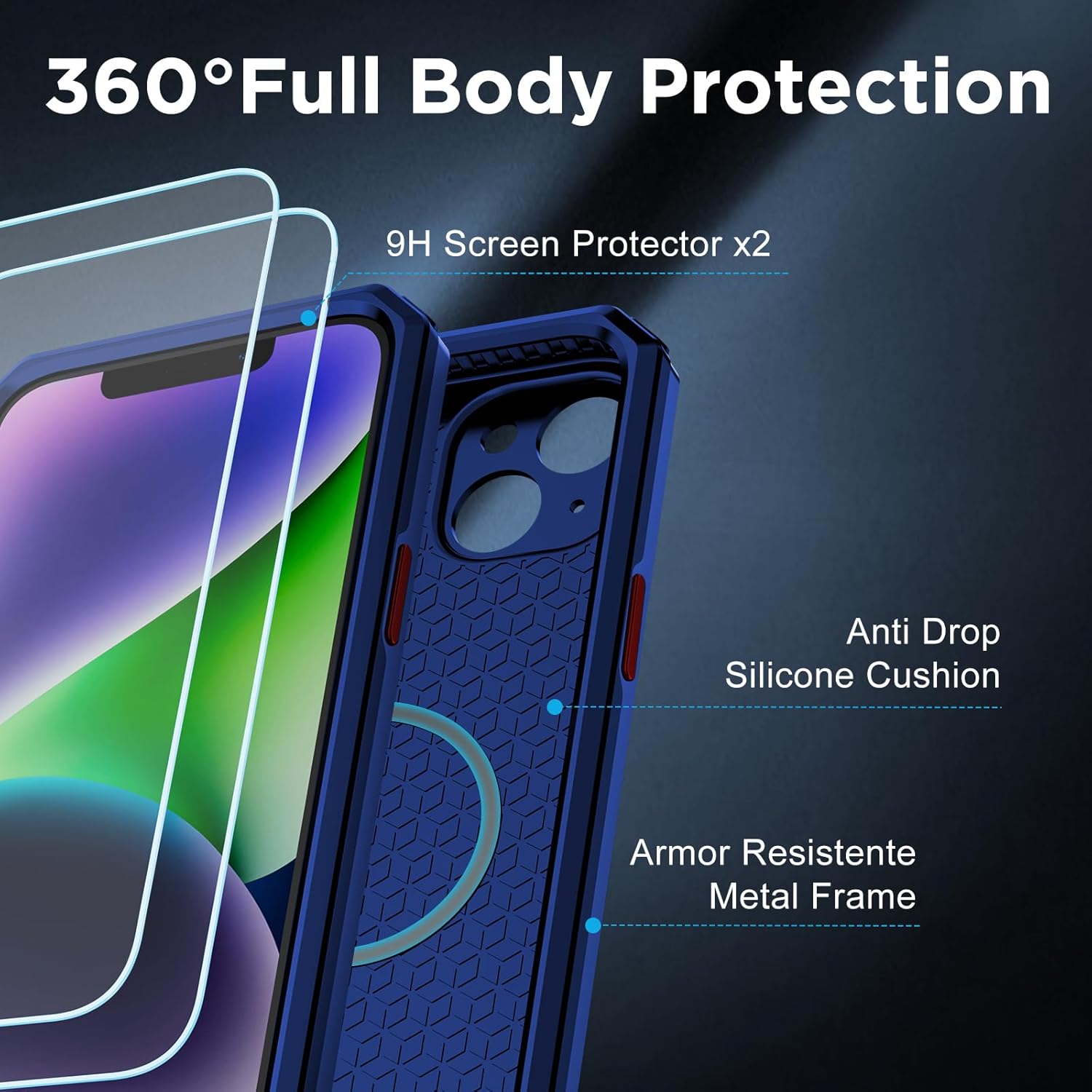 - [Militärnorm Heavy Duty Schutz]: Diese iPhone 14 Plus Hülle ist aus Metall(Edelstahl) und Silikonmaterial hergestellt. Robustes Material + kompakte Molekularstruktur für hohe Schlagfestigkeit. Streng getestet, um einen vollständigen Schutz auf allen