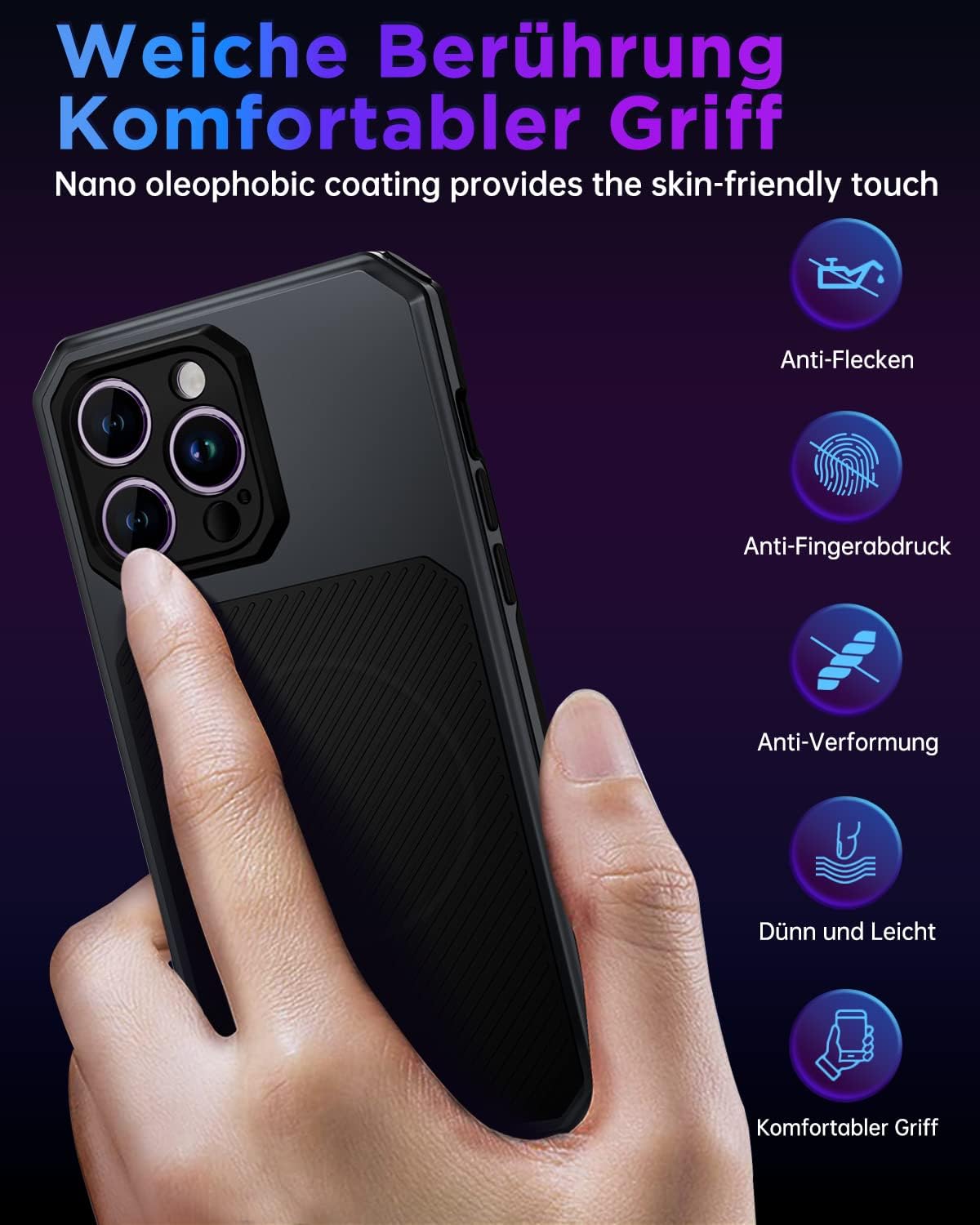 • 【Angenehmste Berührung und Griff】 : Diese Handyhülle iPhone 14 Pro Max hat eine mattierte Beschichtung und einen gewölbten Rand. Seidig glatter Touch macht jede Berührung angenehmer. Die Oberfläche ist ausserdem mit einer Nanobeschichtung
