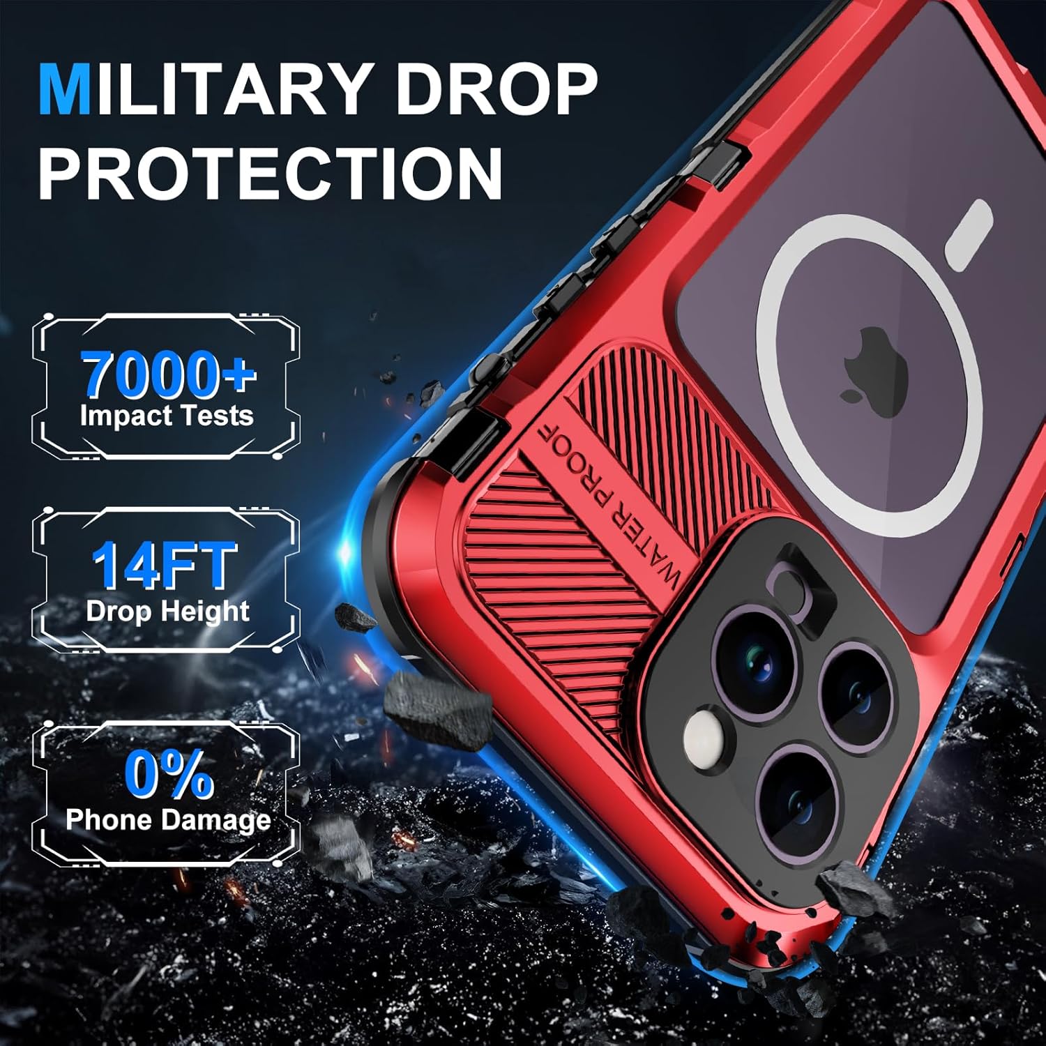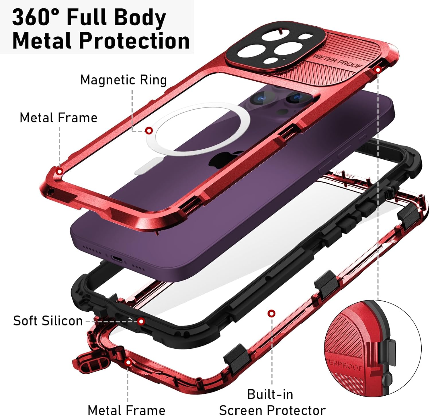 • 【IP68 Wasserdicht】 WIFORT Metall Hülle ist nur für iPhone 14 Pro Max entwickelt und ist IP68 Wasserdicht zertifiziert, die komplette Schutzhülle kann bis zu 6,6'/2m für 1 Stunde unterwasser werden, perfekt für Outdoor-Aktivitäten wie Schwimmen,