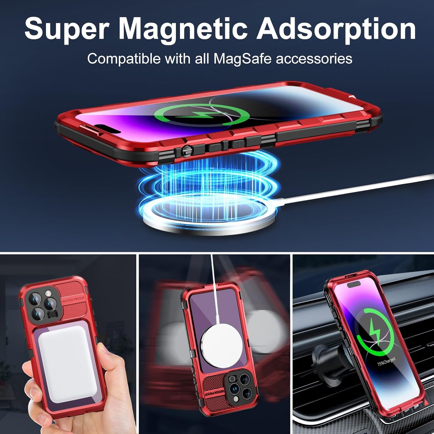 WIFORT für iPhone 14 Pro Max Hülle Wasserdicht mit MagSafe, 360 Outdoor Metall Schutzhülle mit Displ