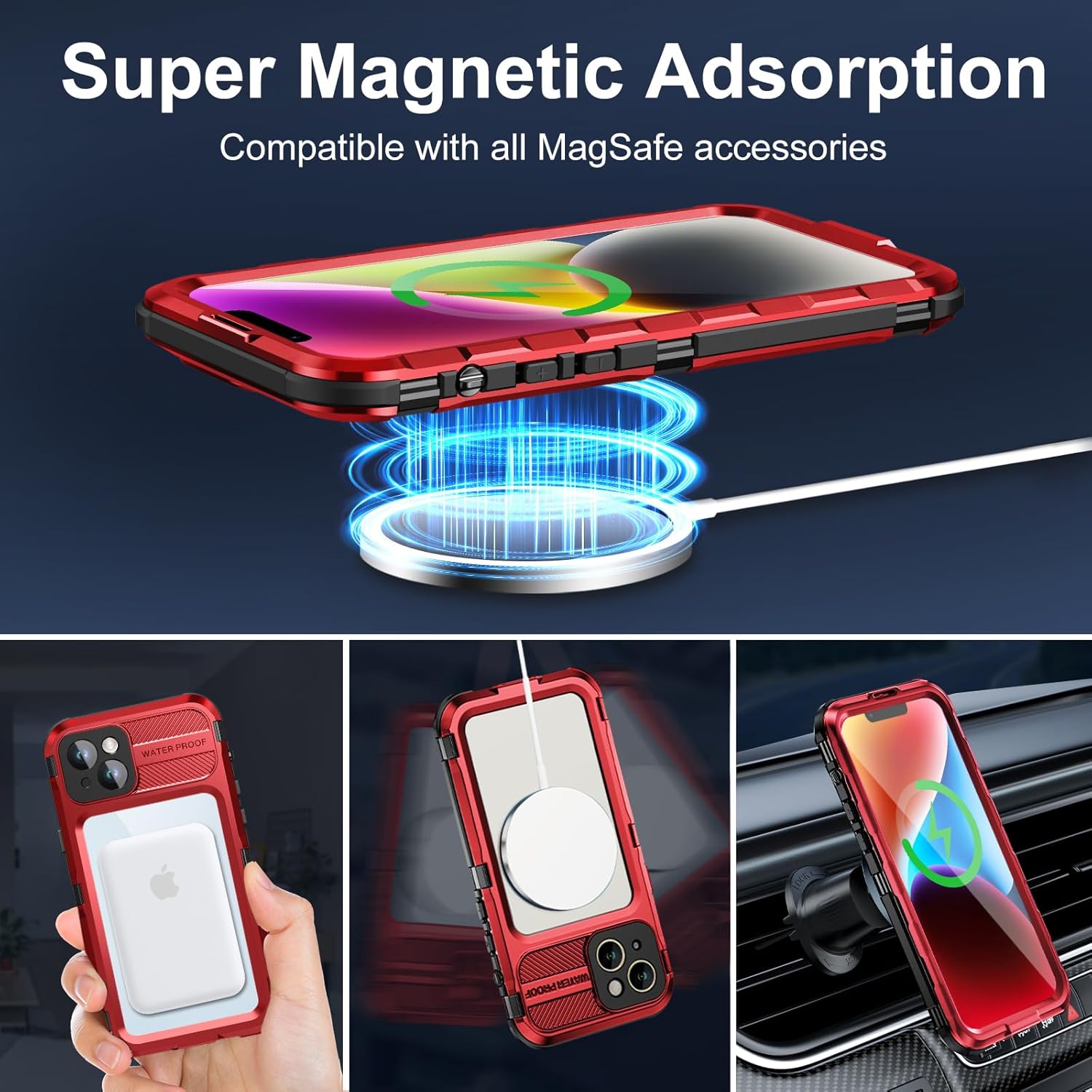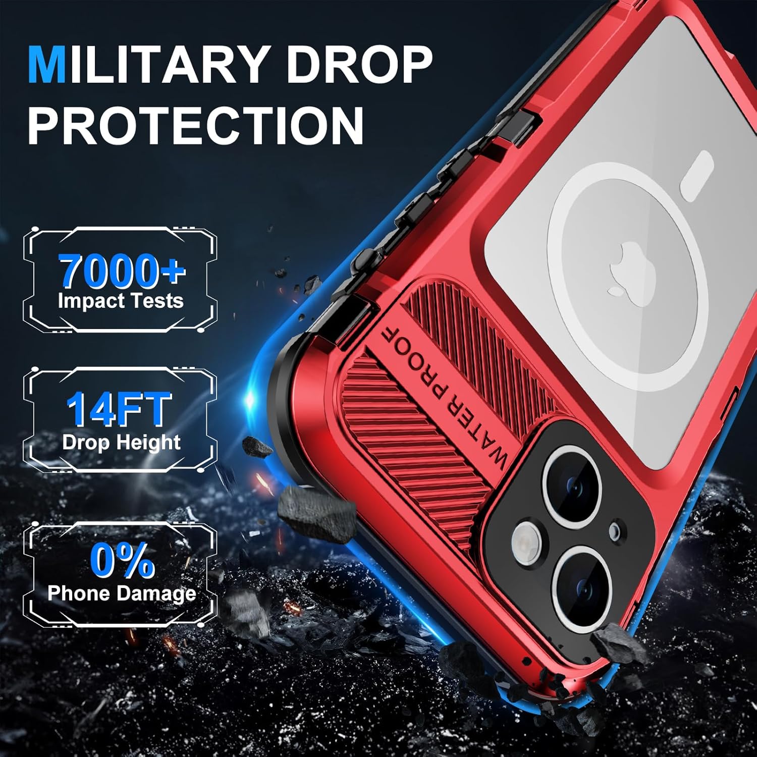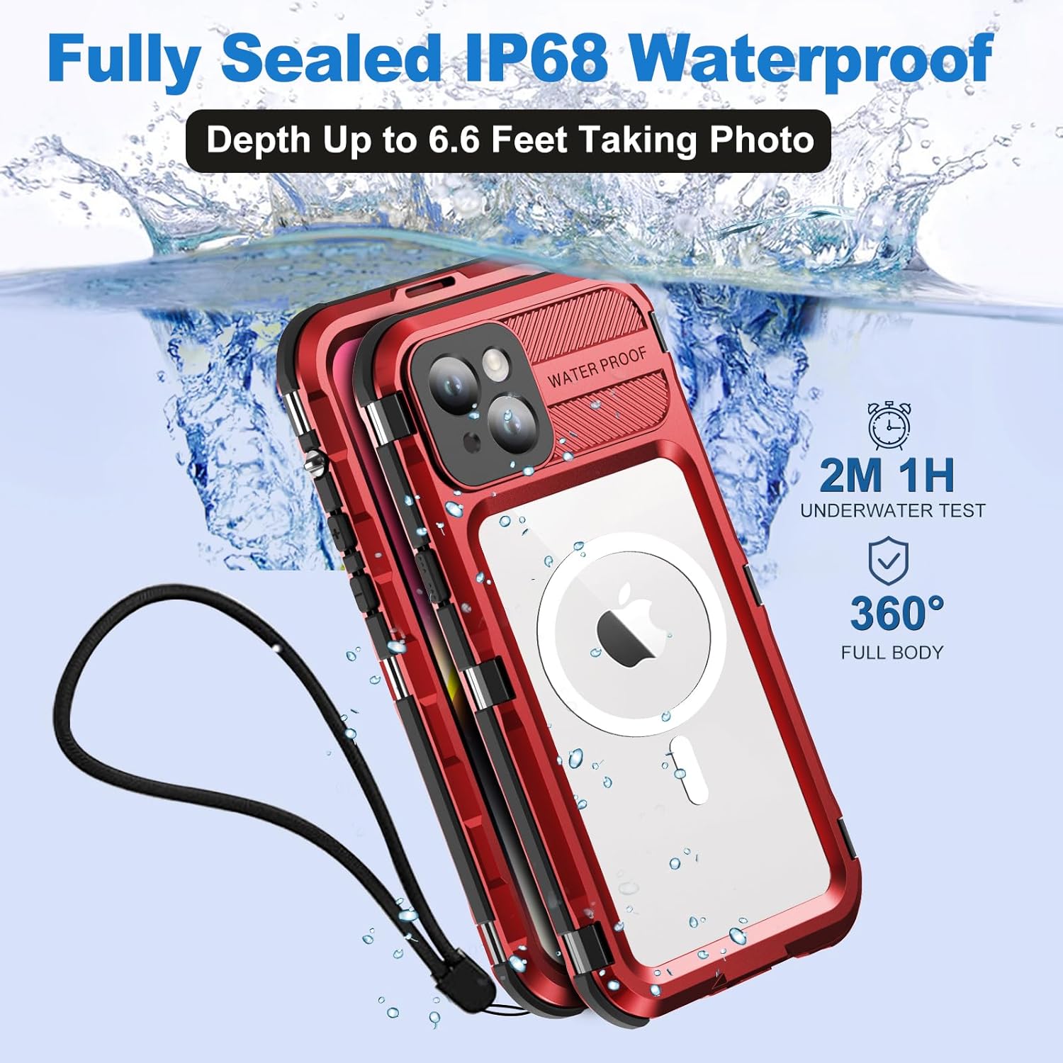 - 【IP68 Wasserdicht】 WIFORT Metall Hülle ist nur für iPhone 14 Plus entwickelt und ist IP68 Wasserdicht zertifiziert, die komplette Schutzhülle kann bis zu 6,6'/2m für 1 Stunde unterwasser werden, perfekt für Outdoor-Aktivitäten wie Schwimmen,