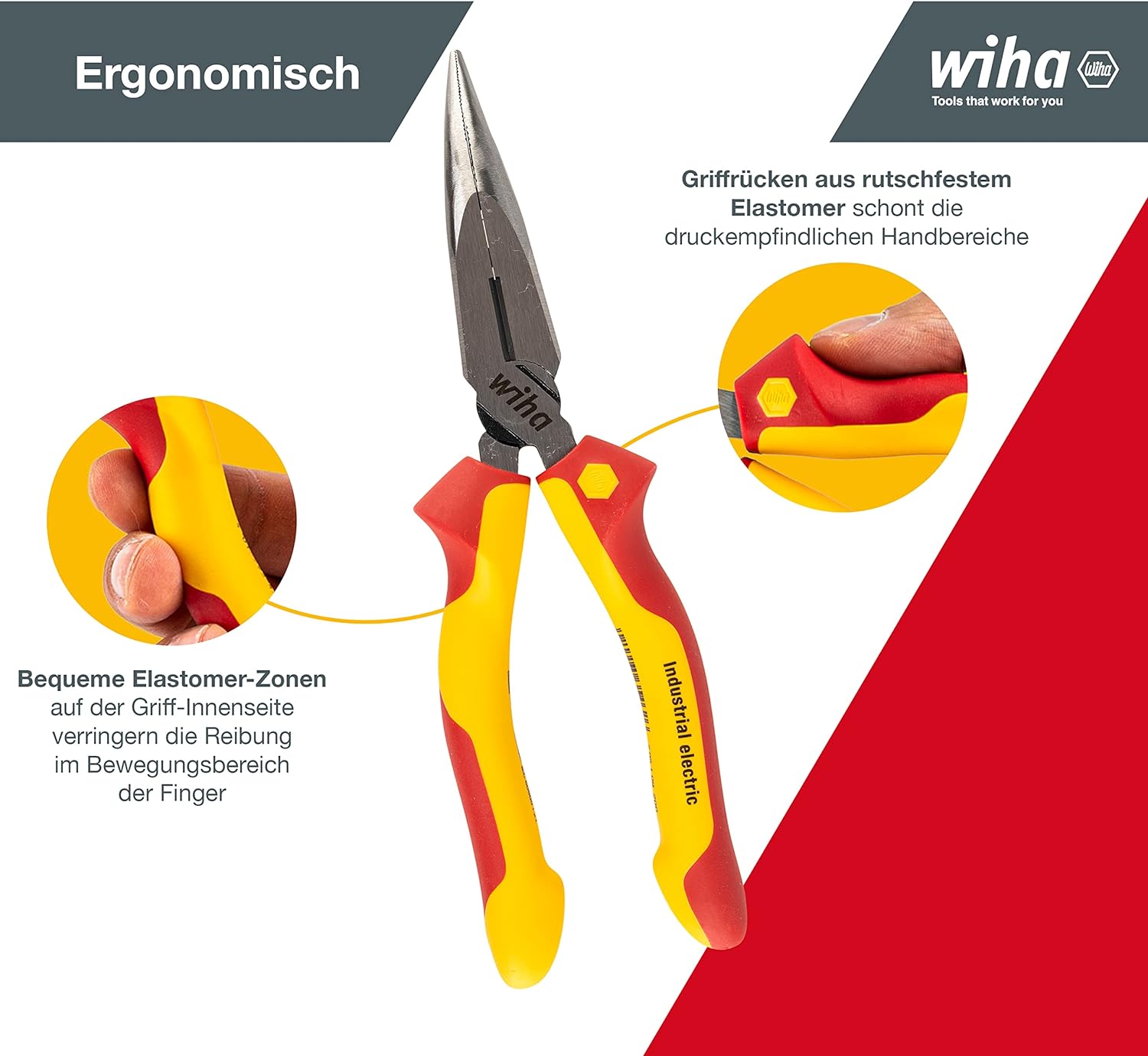 Wiha Flachrundzange Industrial electric mit Schneide gebogene Form, ca. 40° Zuführen leicht gemacht