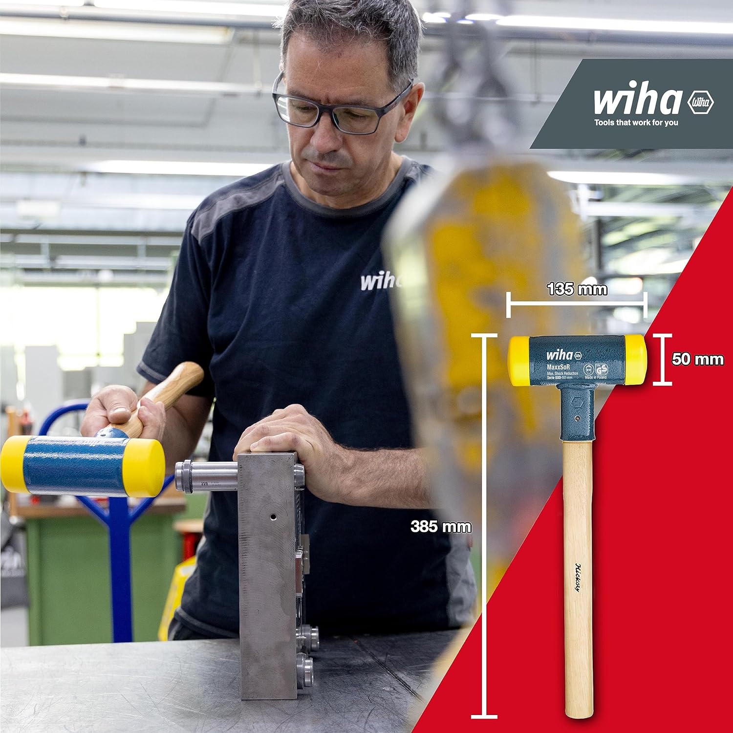 Wiha Schonhammer rückschlagfrei I Hickory-Holzstiel I Rund-Schlagkopf Ø 50 mm I mittelhart I Kunstst