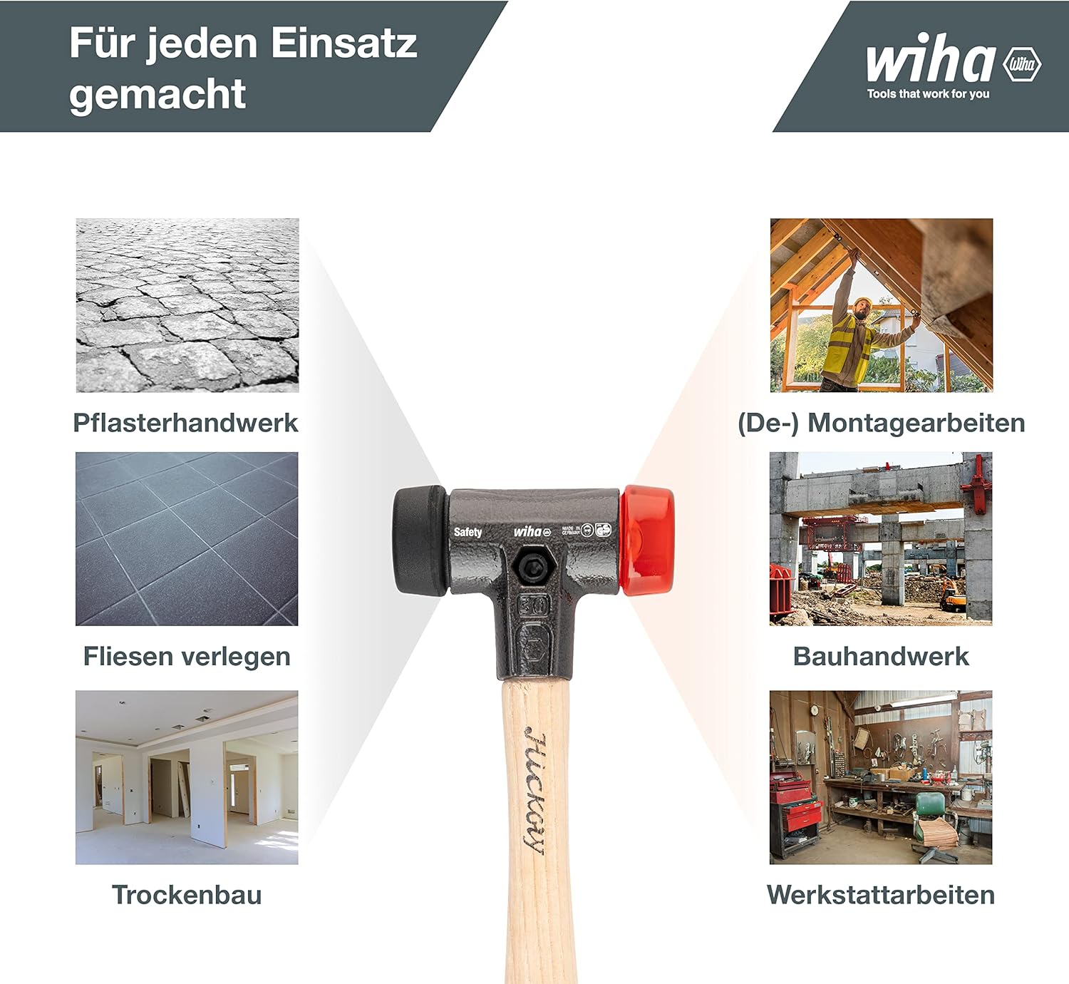 - Sowohl die Schlagköpfe als auch der Hickory Stiel sind einzeln als Ersatzteil erhältlich - somit schonen die Wiha Safety Hammer nicht nur Werkstück und Anwender, sondern auch die Umwelt.