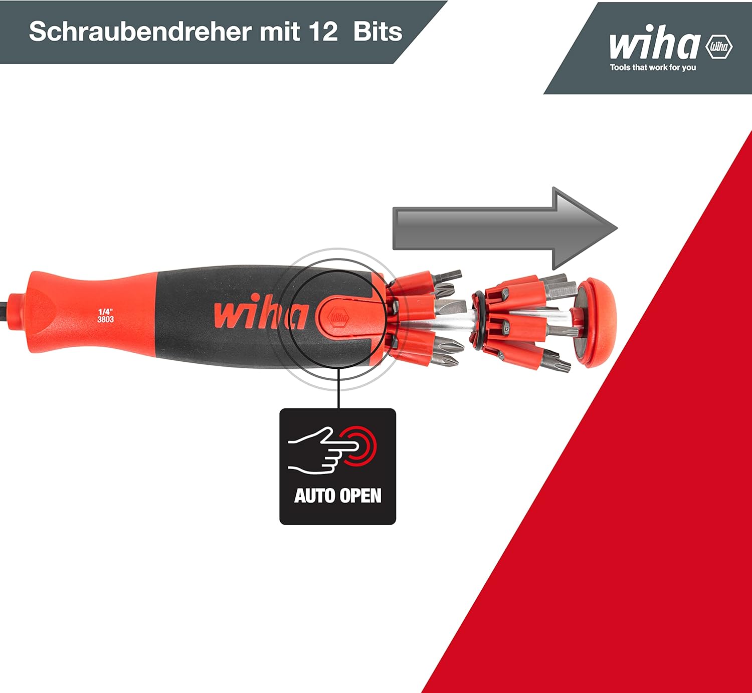 - Das umfangreiche 12-teilige Set lässt keine Wünsche offen. Dank der durchdachten Bitauswahl kann jede Alltagsanwendung problemlos mit dem flexiblen Wiha Bithalter Schraubendreher gemeistert werden.
