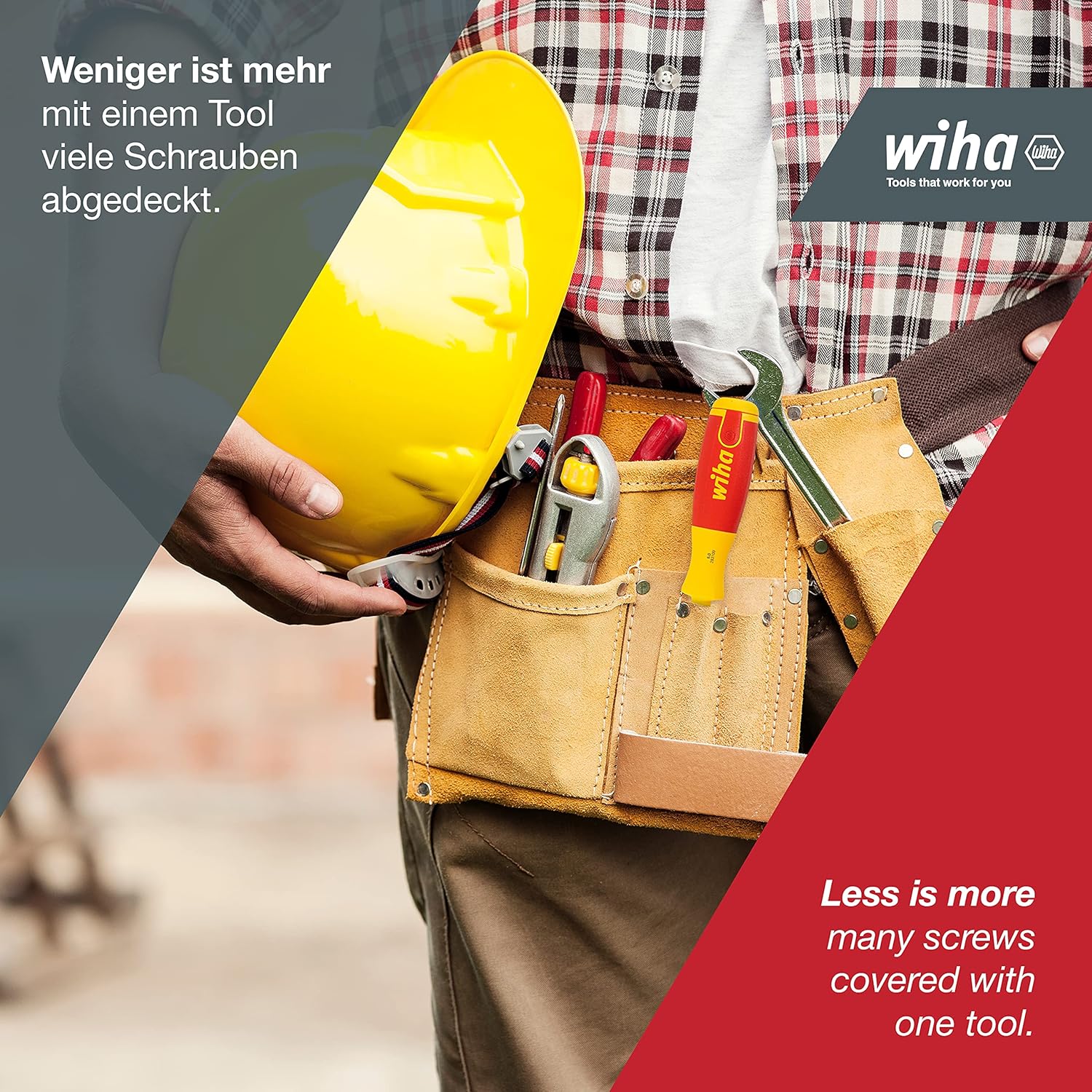 - HOHE QUALITÄT UND ROBUSTHEIT: Der Wiha Schraubendreher ist robust, liegt gut in der Hand und die Bits wackeln nicht, dank einer neuartigen Verriegelung. Der ideale multifunktionale Schraubendreher für Elektriker.