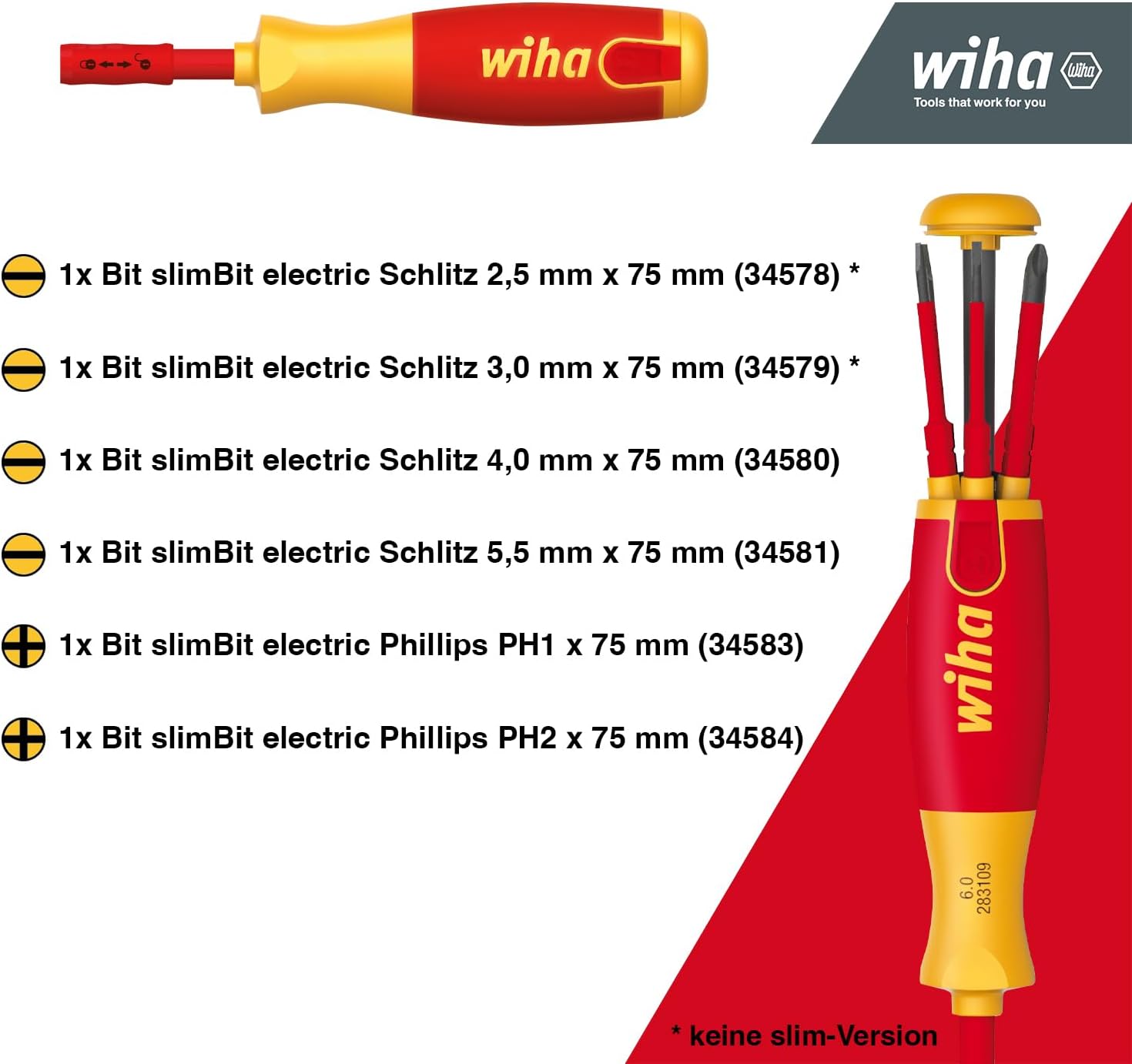 - ERHÖHT IHRE SICHERHEIT: Die Wiha slimBits gewährleisten einen guten und geschützten Zugang zu tief liegenden Schrauben. Der Multifunktionale Schraubendreher ist ideal für Arbeiten an spannungsführenden Teilen bis 1.000 V AC.