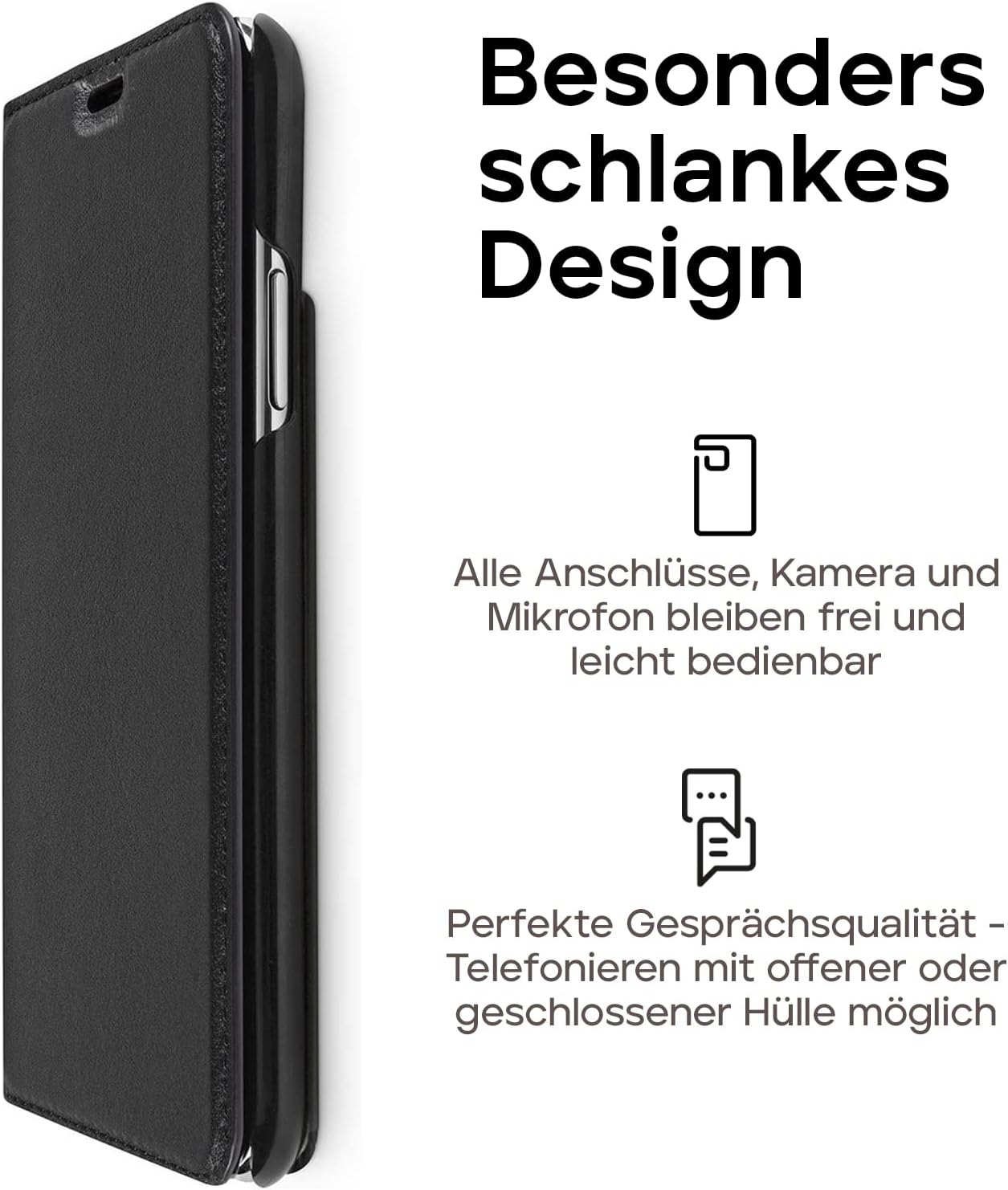 - HIGHLIGHTS: Angenehmes weiches Echtleder; Edles dünnes Design; 100% passgenau für Ihr Apple iPhone X / XS (5.8 Zoll); Innen weiches Schutzfutter gegen Kratzer und Staub; Versiegelte Nähte für eine extra Langlebigkeit; unterstützt kabelloses Laden