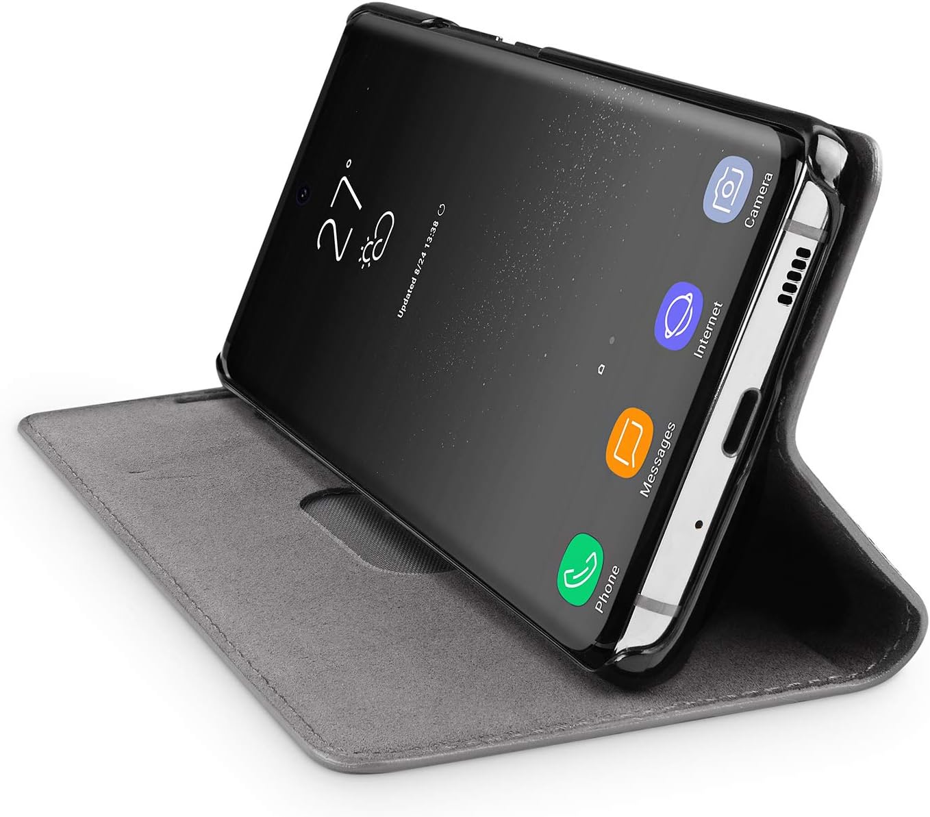 • HIGHLIGHTS: Angenehm dezent duftendes Echtleder aus Italien; Edles dünnes Design; 100% passgenau für Ihr Samsung S20 und S20 5G; Innen weiches Schutzfutter gegen Kratzer und Staub; Versiegelte Nähte für eine extra Langlebigkeit; unterstützt