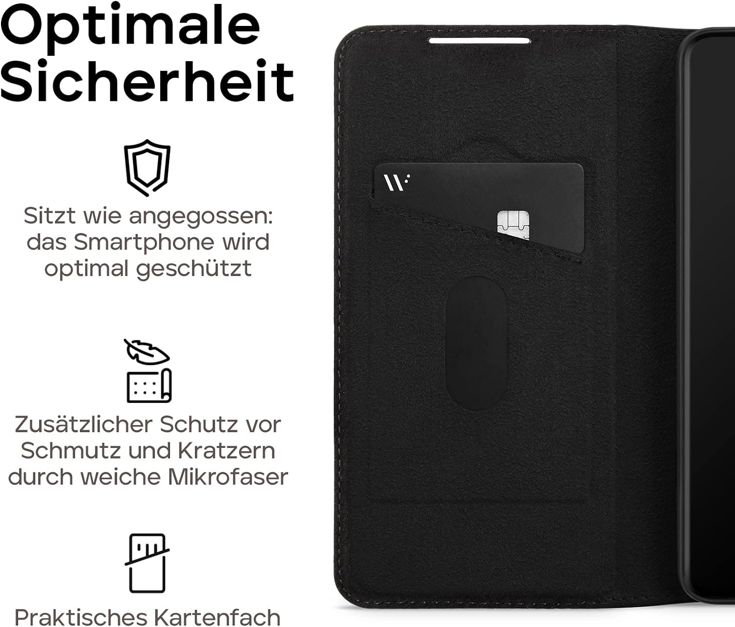 WIIUKA Hülle für Samsung Galaxy S21, Lederhülle, Deutsches Premium Leder, mit Kartenfach, extra Dünn