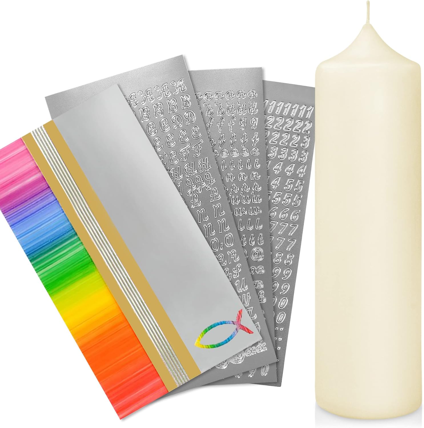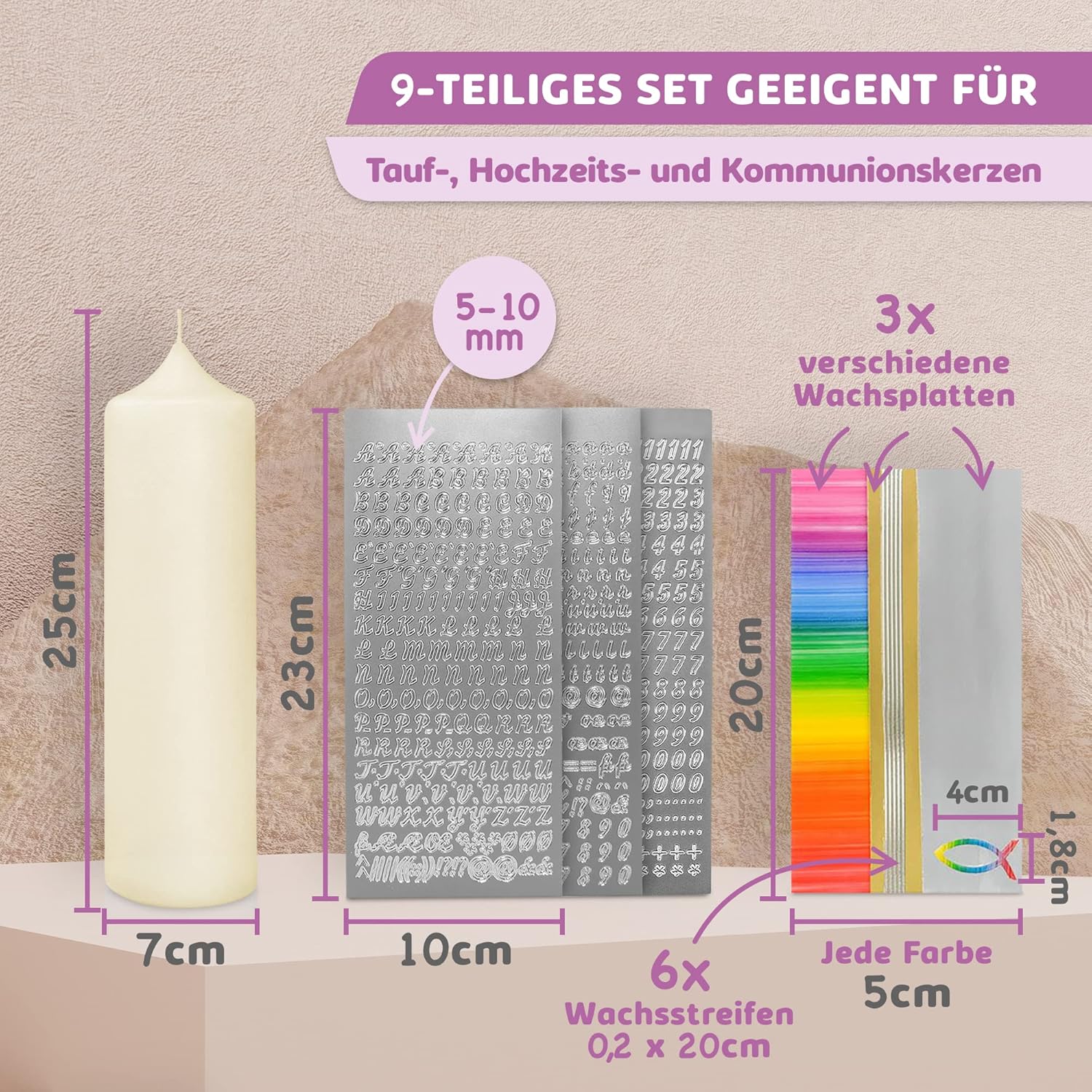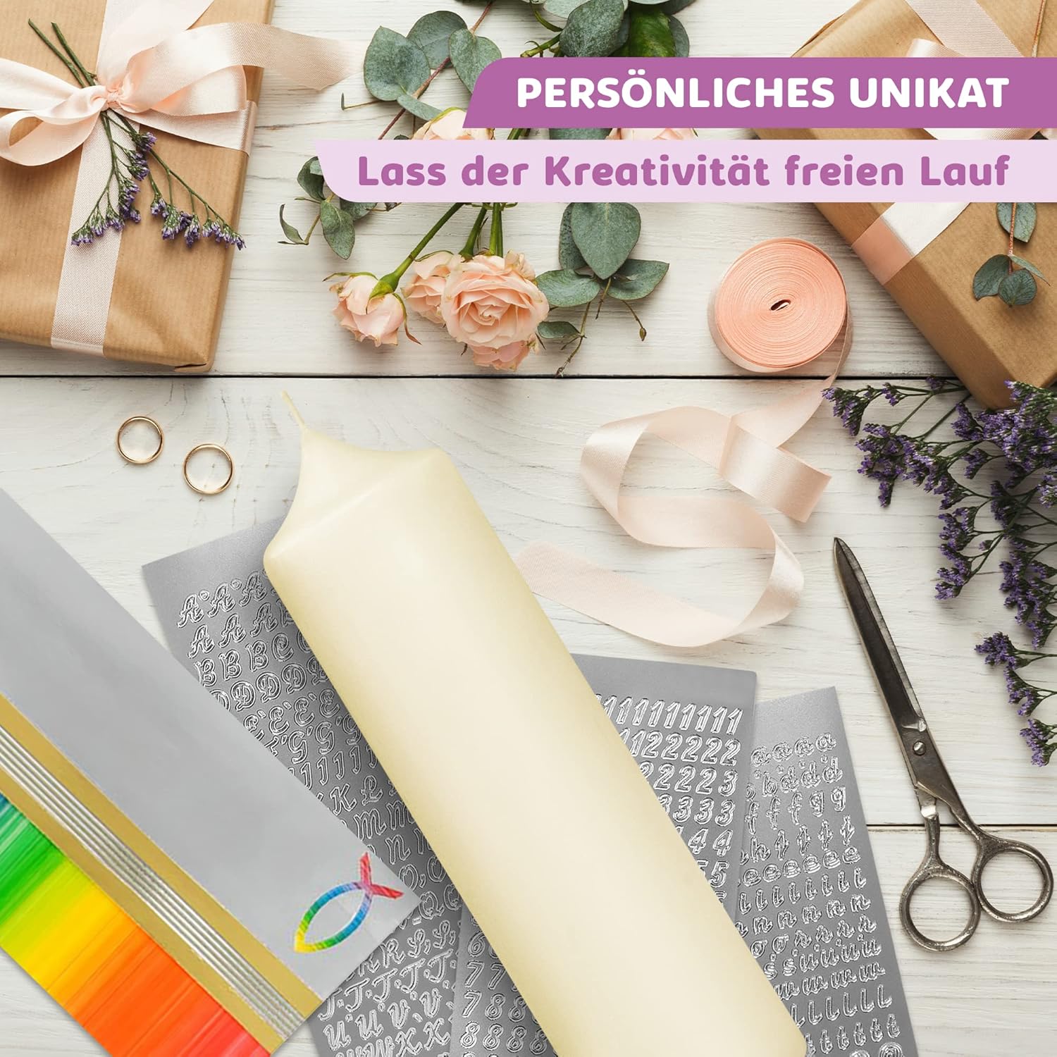 - 🕯️ EINZIGARTIG: Verzieren Sie mit diesem DIY-Set ganz einfach Ihre persönliche & individuelle Kerze. Die ideale Geschenk-Idee für feierliche Anlässe, wie Hochzeit oder Taufe