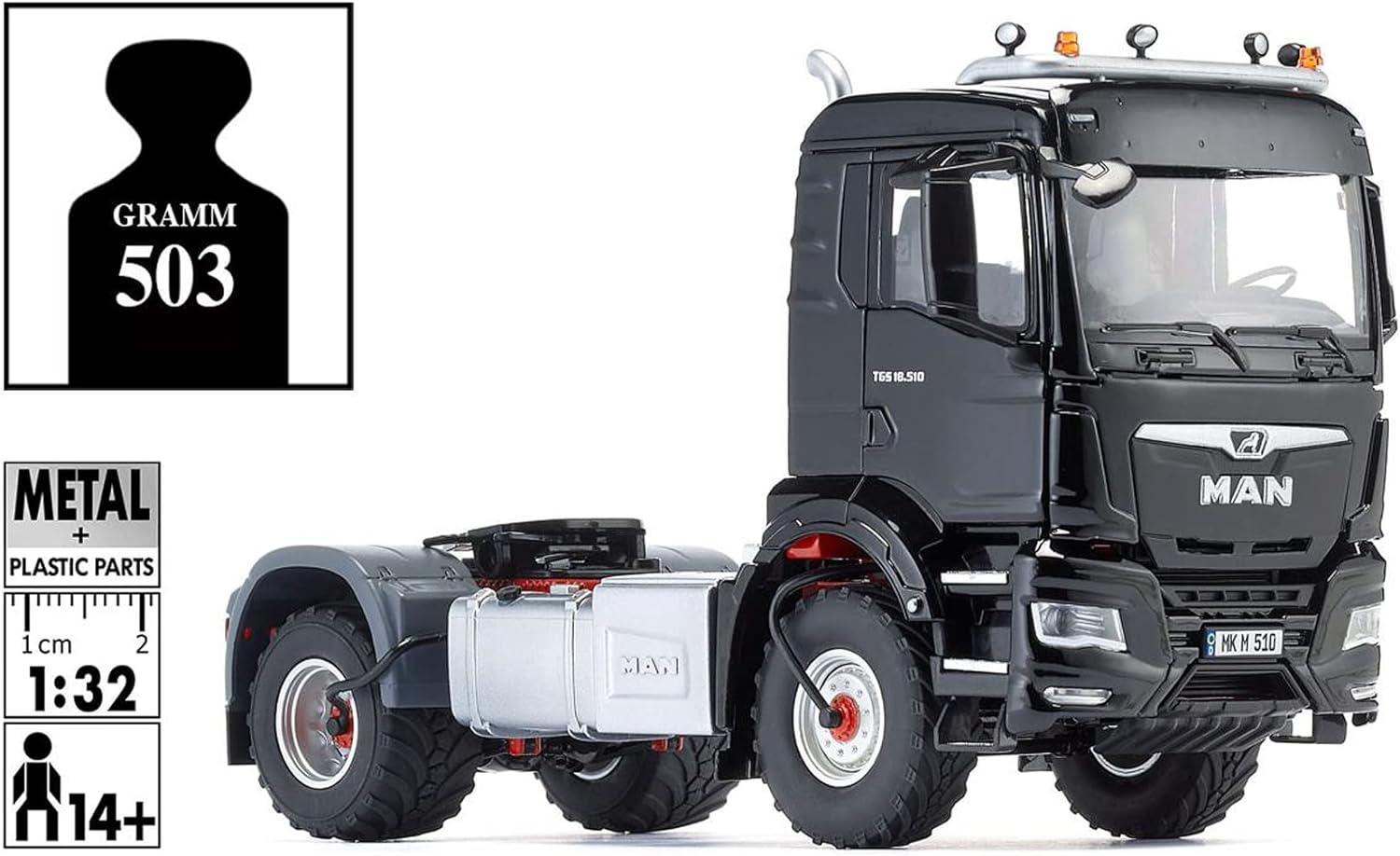 - Lieferumfang: 1x WIKING 077651 MAN TGS 18.510 4x4 BL 2-Achs Zugmaschine, Ab 14 Jahre, Massstab: 1:32, Material: Metall/Kunststoff, Masse: 19,3 x 9,1 x 10,8 cm, Gewicht: 0,503 kg, Farbe: Schwarz