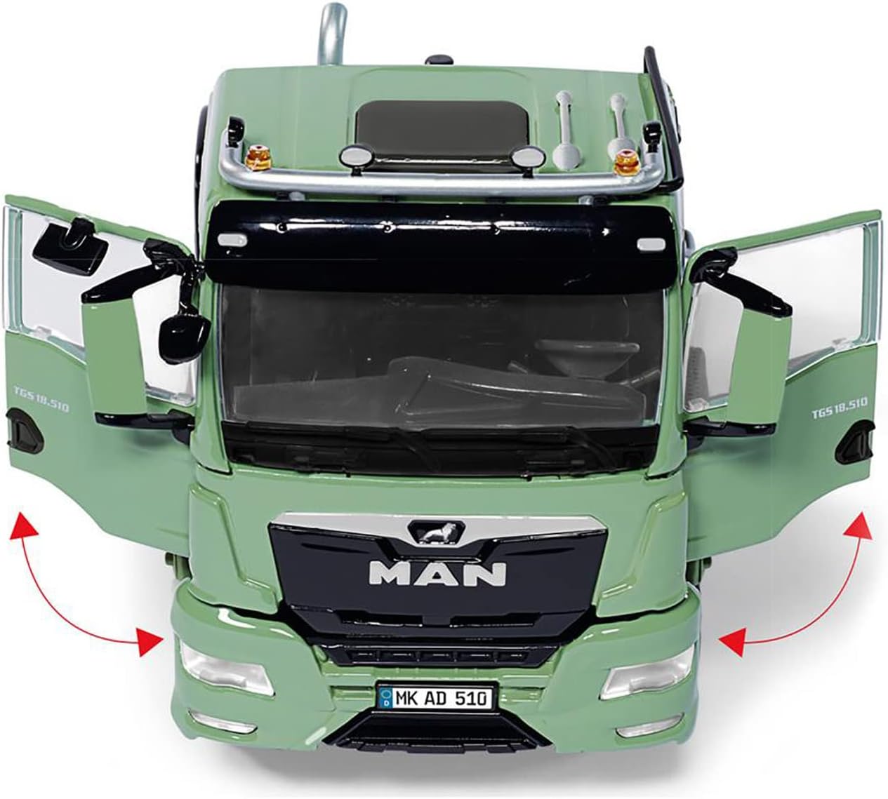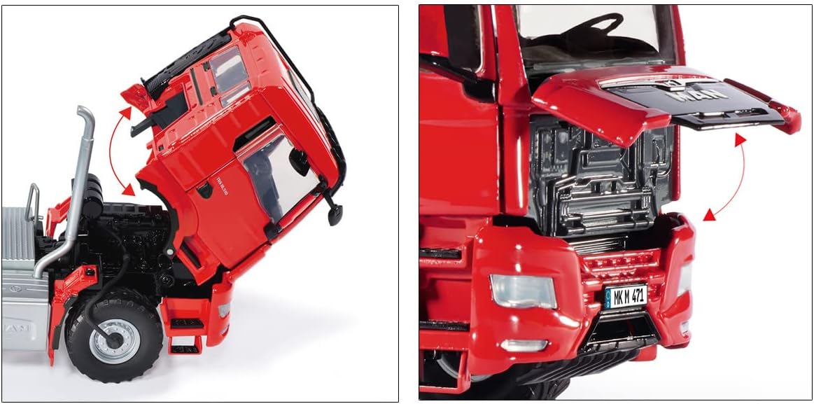 - Spass an Funktionen: Kühlergrill nach oben schwenkbar für freien Blick auf die Aggregate, Sattelplatte mit nach vorne gelagertem Hebel zum Sichern des Aufliegers, Kippbares Fahrerhaus