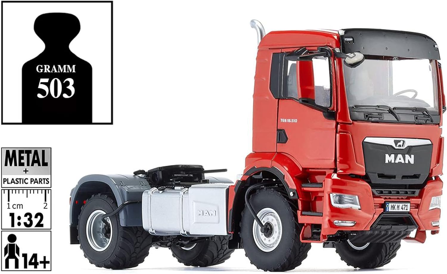 - Lieferumfang: 1x WIKING 077653 MAN TGS 18.510 4x4 BL 2-Achs Zugmaschine, Ab 14 Jahre, Massstab: 1:32, Material: Metall/Kunststoff, Masse: 19,3 x 9,1 x 10,8 cm, Gewicht: 0,503 kg, Farbe: Rot
