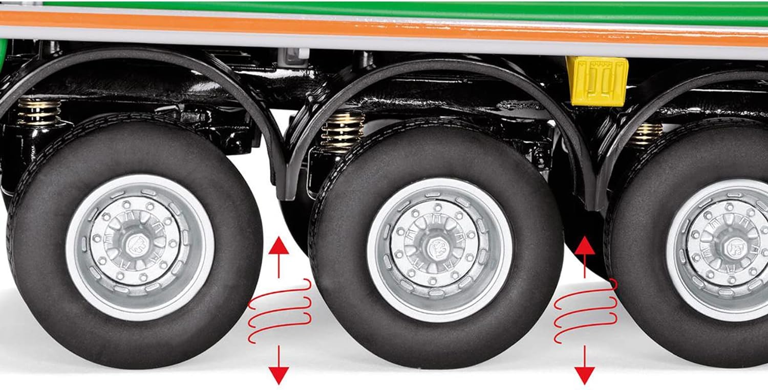 - Spass an Funktionen: Ausziehbare Stützen zur vorbildgerechten Alltagspräsentation, Nachvollziehbare Funktion der Lift-Achse, Schwenkbare Kupplungsarmaturen, Lenkbare Hinterachse