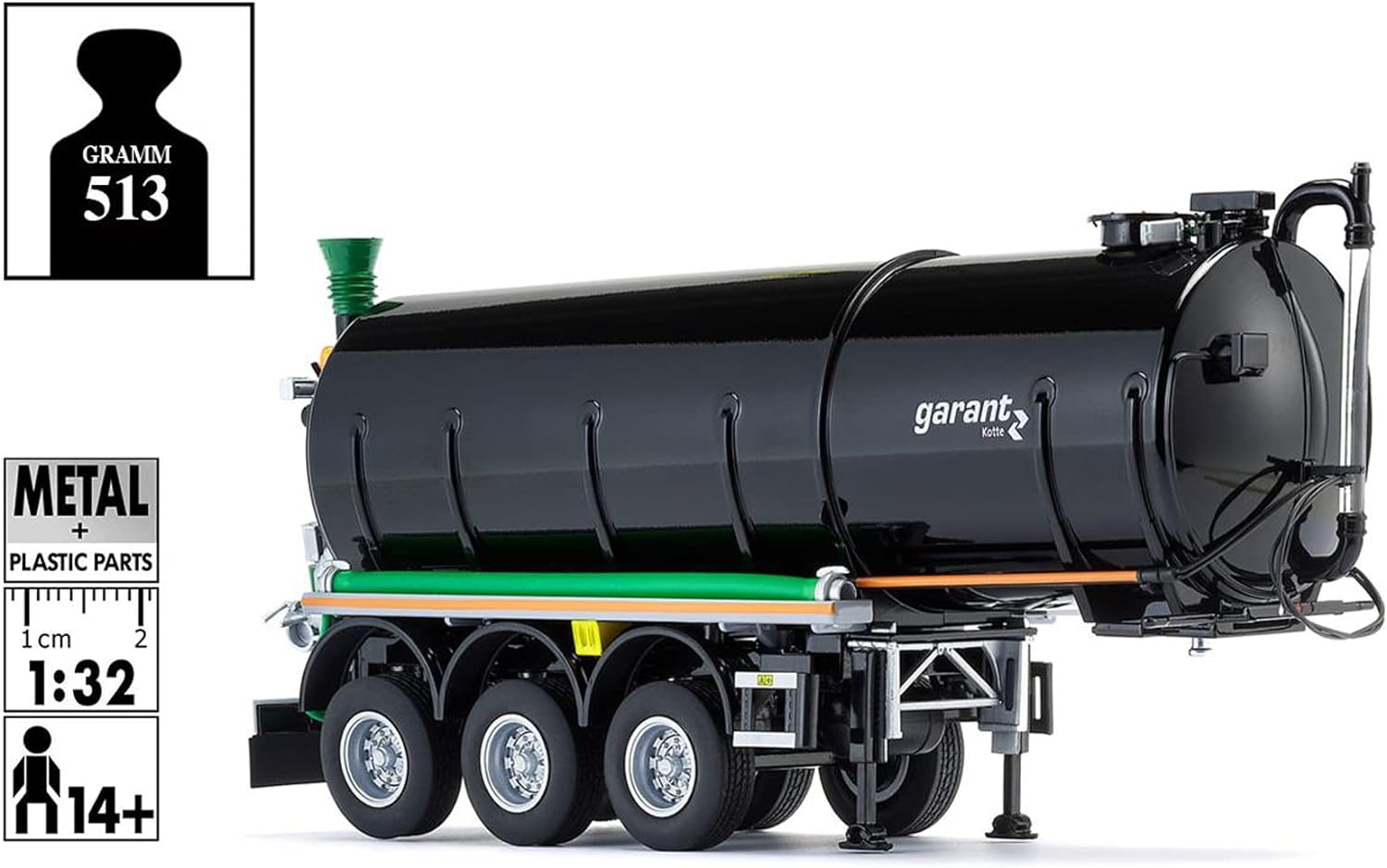 - Lieferumfang: 1x WIKING 077654 Kotte Tanksattelauflieger garant TSA 30.000, Ab 14 Jahre, Massstab: 1:32, Material: Metall/Kunststoff, Masse: 29,5 x 8,1 x 13,3 cm, Gewicht: 0,5135 kg, Farbe: Schwarz