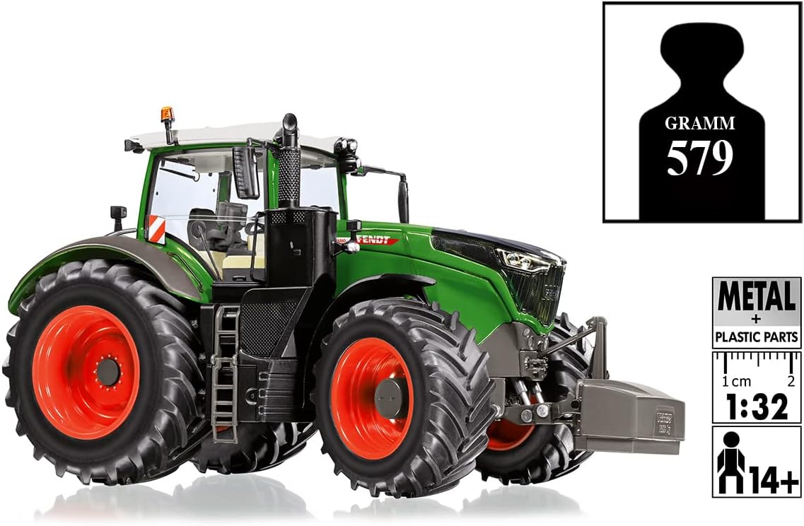 - Lieferumfang: 1x WIKING 077864, Fendt 1050 Vario, Ab 14 Jahre, Massstab: 1:32, Material: Metall/Kunststoff, Masse: 21,6 x 10,1 x 11,1 cm, Gewicht: 0,578 kg, Farbe: Grün