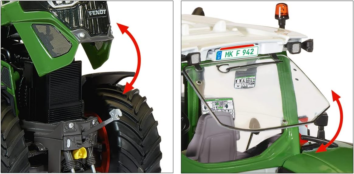 - Spass an Funktionen: Wechselbare Räder, Motorhaube zum Öffnen, Bewegliche Ober- und Unterlenker, Fahrertür und Heckfenster zum Öffnen, Pendelachse über Lenkrad steuerbar