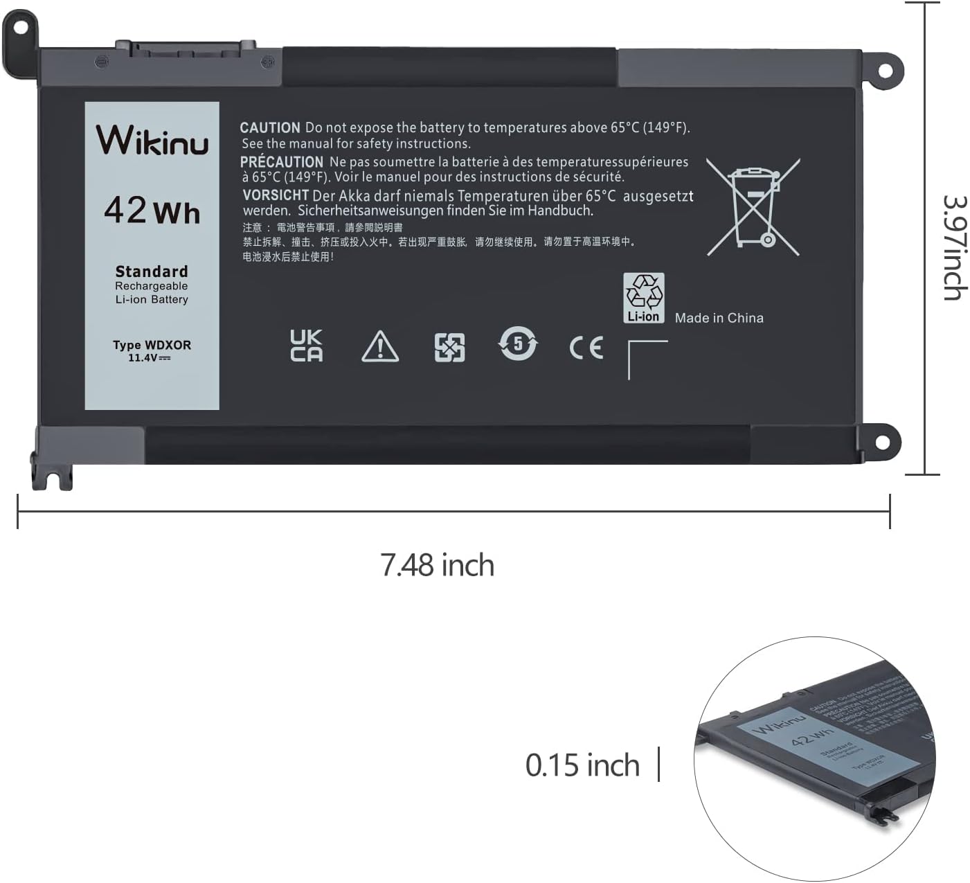 - 【Batterie Spezifikationen】Modell: WDX0R; Batterietyp: Wiederaufladbares Lithium-Polymer; Anzahl der Zellen: 4-Zellen; Kapazität: 42Wh 3680mAh; Spannung: 11,4V; Batterielebensdauer:Erwartete Lebensdauer von mehr als 1000 Ladezyklen.