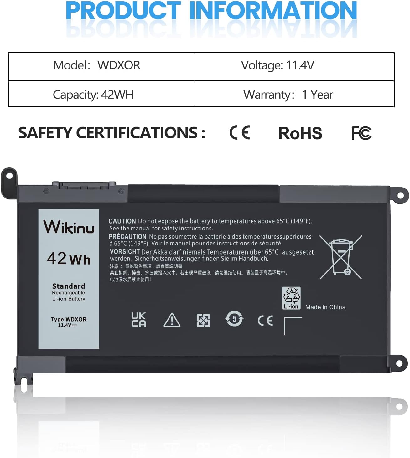 - 【Ausreichende Sicherheitsgarantie】 Alle Wikinu-Produkte haben die CE/FCC/RoHS-Sicherheitszertifizierung bestanden. Jeder Akku besteht aus hochwertigen, langlebigen Zellen und Materialien der A-Klasse, um maximale Lebensdauer und Leistung zu