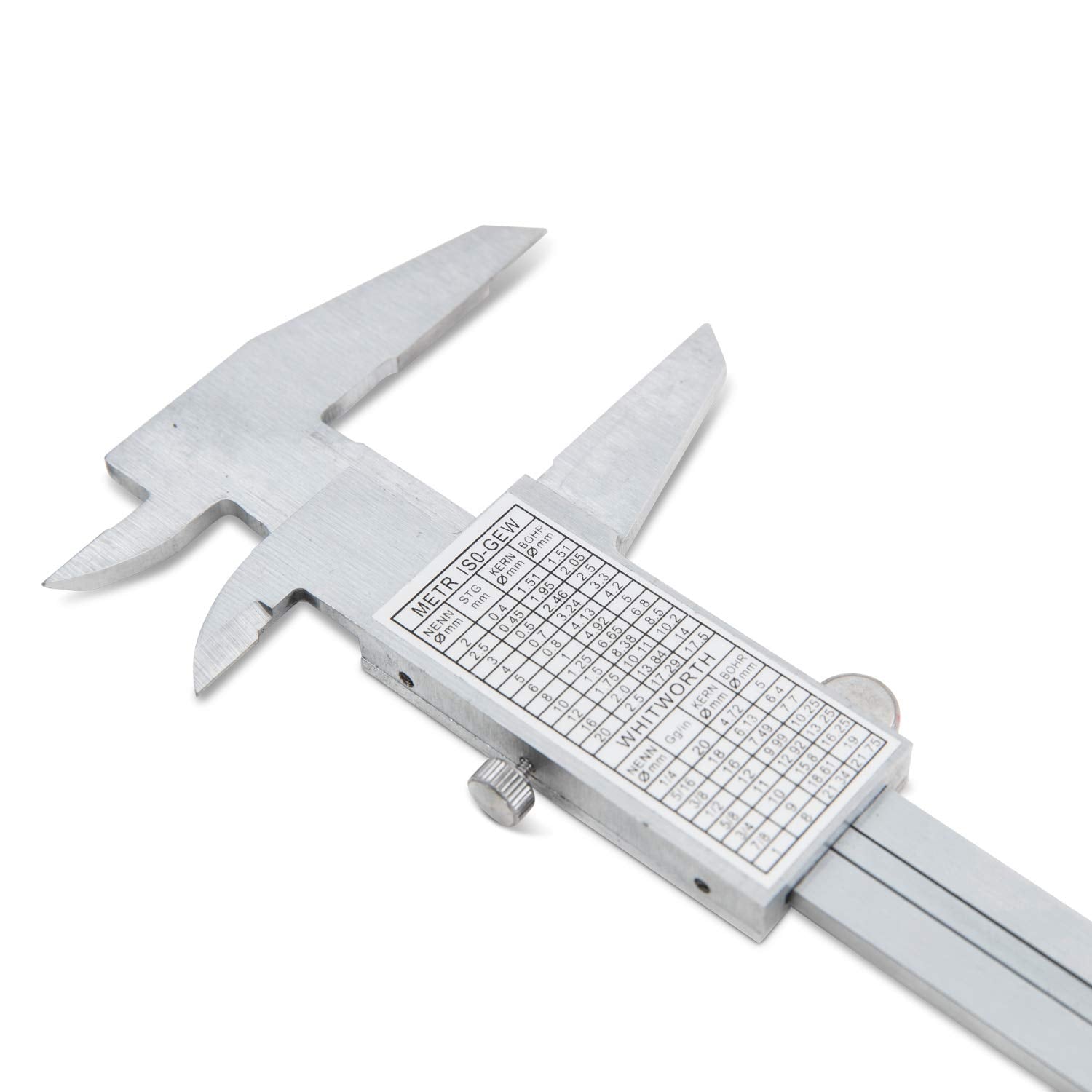 - GENAU: Unser Messschieber ist aufgrund des Messbereichs von 0 bis 150 mm mit einem Messwert von 0,05 mm genau. 6 Zoll Kaliber mit 1/128 Messwert.