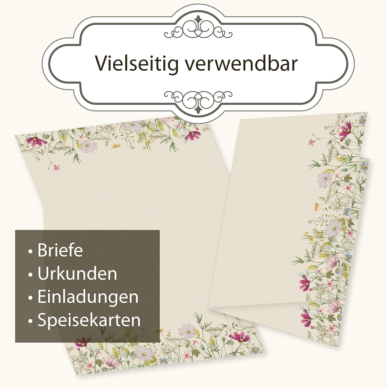• Glückwunsch! Hier hast Du ein tolles Briefpapier entdeckt, das nicht nur wunderschön aussieht sondern auch nachhaltig produziert wurde, Du erhältst: 250 Blatt Briefpapier Wildblumen beidseitig bedruckt im Vintage Stil