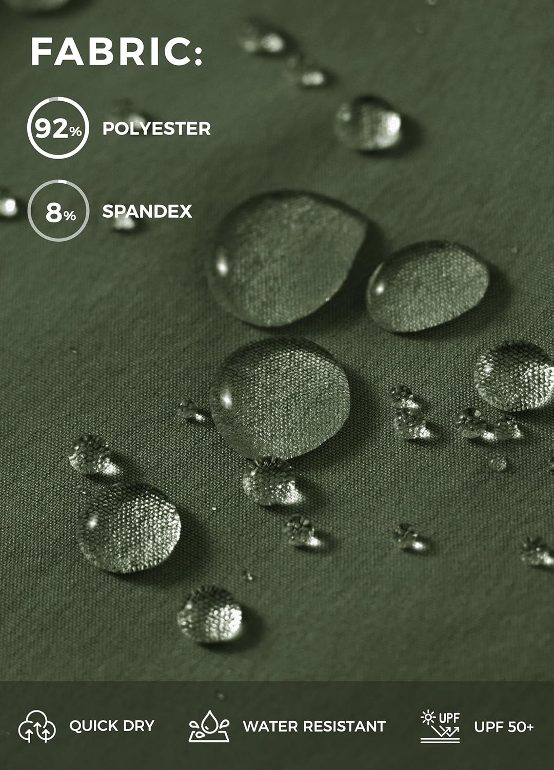 - Fortschrittliche Stoffe: Leichte, atmungsaktive Materialien halten Feuchtigkeit von der Haut fern und sorgen den ganzen Tag für Trockenheit. Die strapazierfähige, wasserabweisende und schnelltrocknende Behandlung schützt vor leichtem Regen und