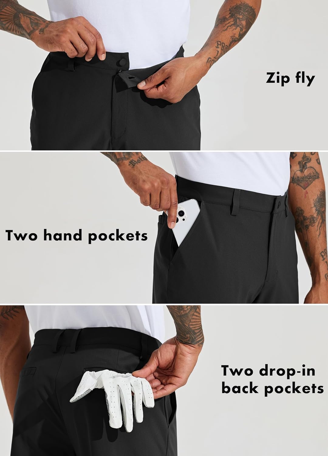 PRODUKTBESCHREIBUNGEN Die Golfhose für Herren kombiniert zeitlosen, klassischen Stil mit Vielseitigkeit und bietet ganztägigen Komfort und modernes Aussehen auf und neben dem Platz. Das Stretch-Performance-Material ist leicht, atmungsaktiv und schnelltrocknend für maximalen Komfort. Stretch Golfhose Herren Lang Golf Pants, Golf Trousers Slim fit Mehr