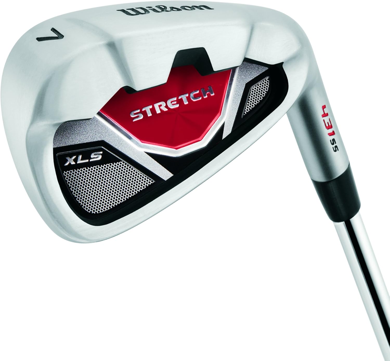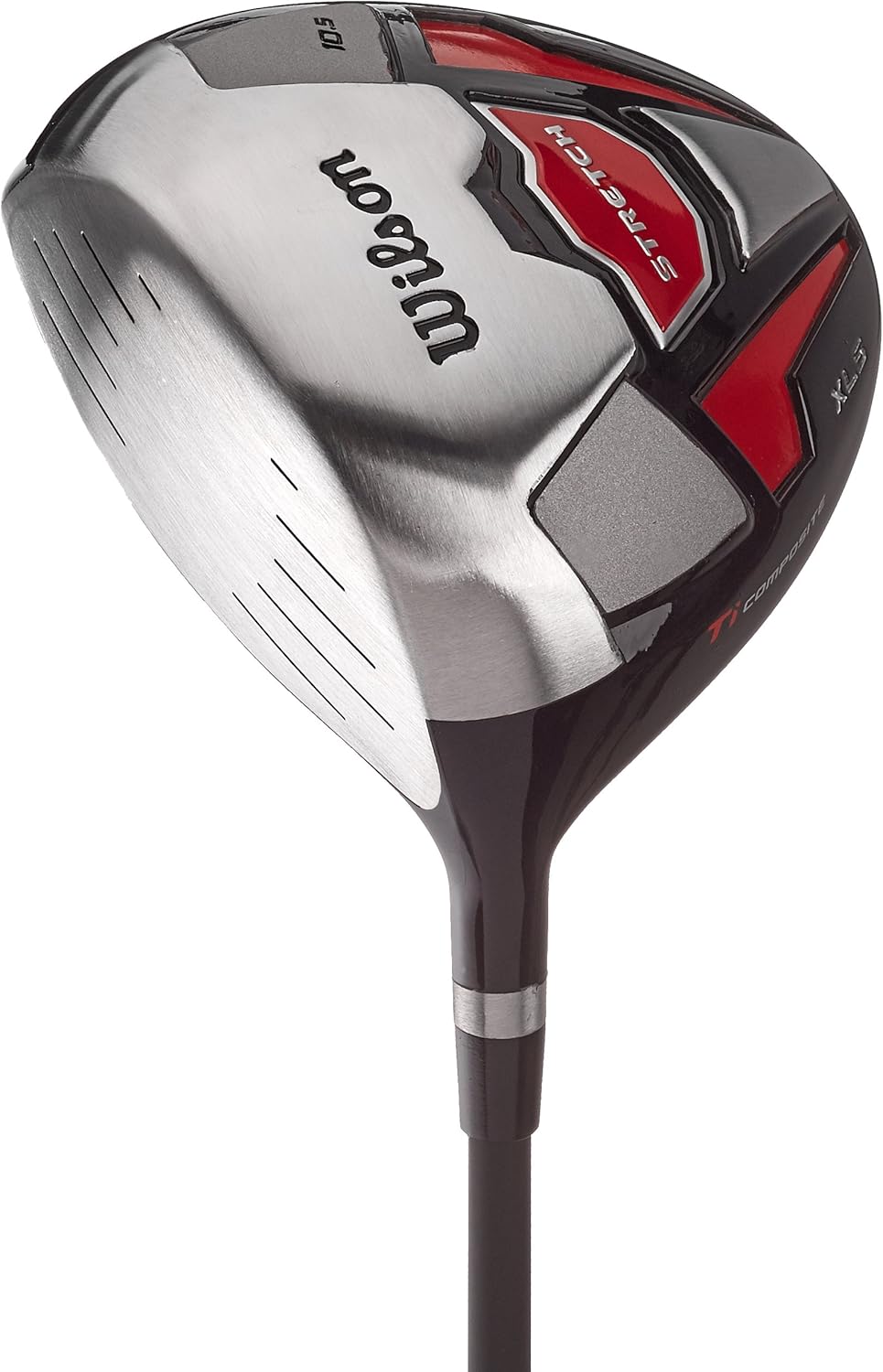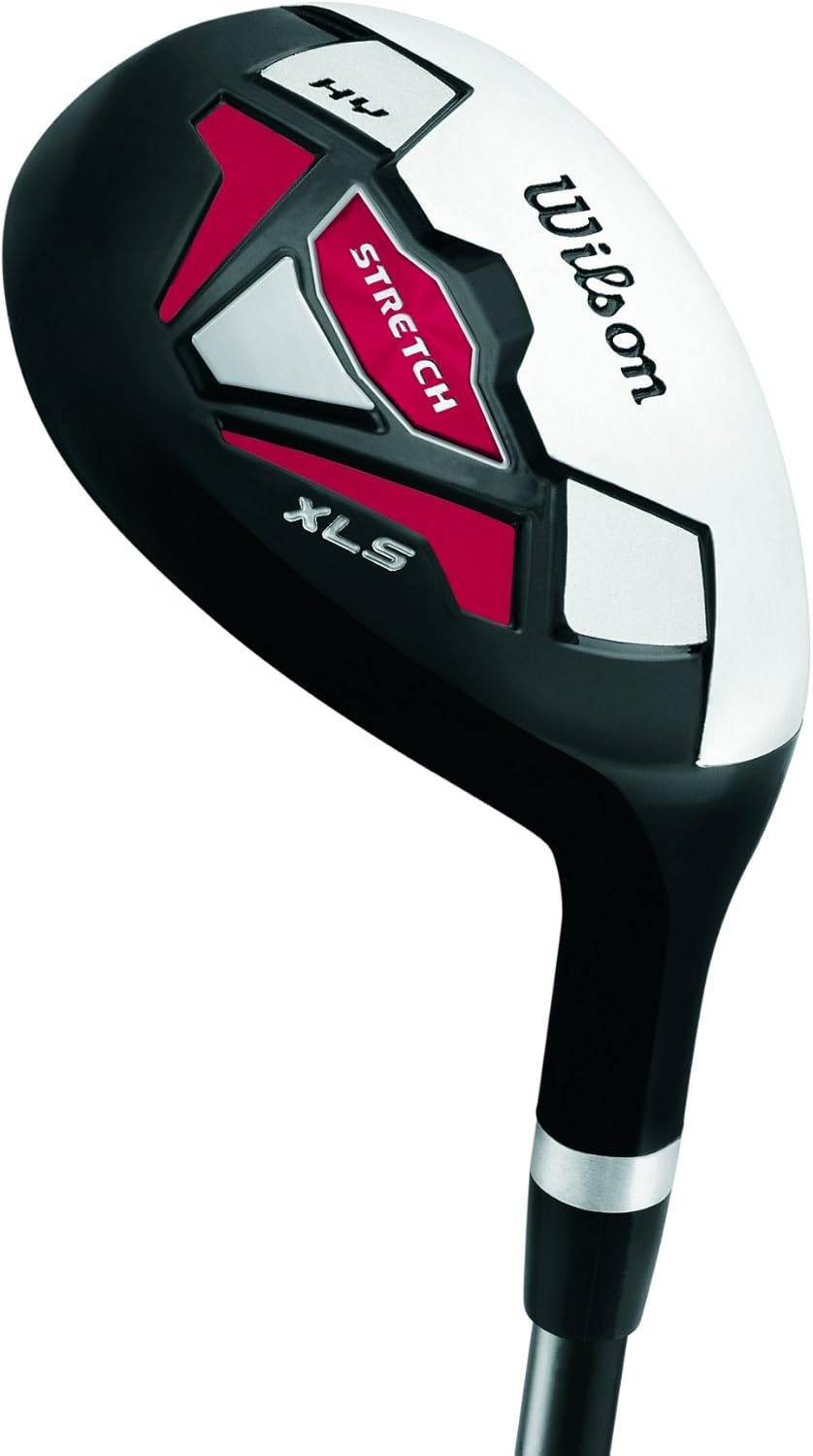 - Wilson Stretch XL Schläger mit Graphitschaft: 10,5°Loft Driver für lange, gerade Schläge vom Tee, Holz 3 für Schläge vom Fairway, Hybrid 5 für schwierige Lagen (Ersatz f. Eisen 5), Eisen 6, 7, 8, 9 für mittellange Schläge ins grün und