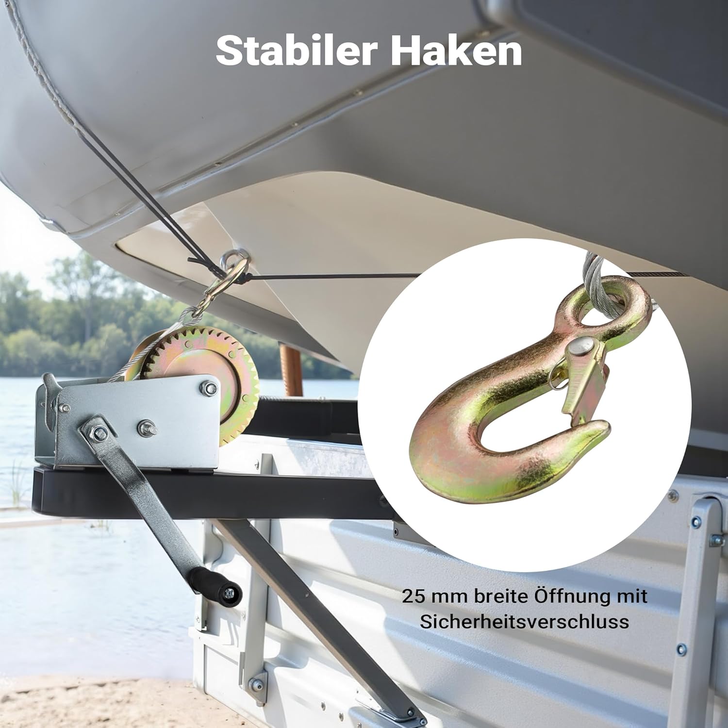 - [Robust und wetterbeständig] – Das verzinkte Gehäuse der Winde gewährleistet Widerstandsfähigkeit gegenüber widrigen Wetterbedingungen und ist somit ideal für den Einsatz auf Booten und im Freien