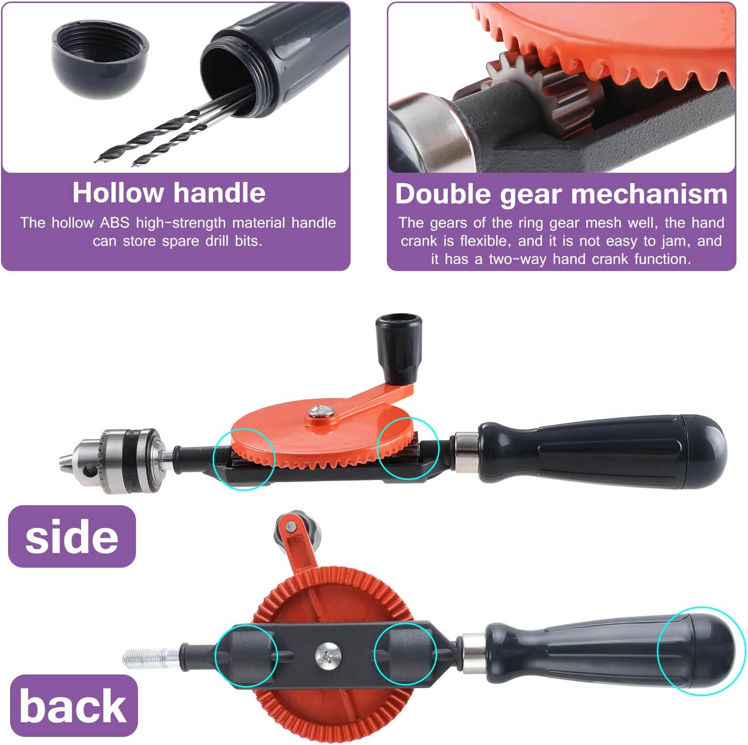 - ✔️【Premium-Material】: Dieses Handbohrer-Set besteht aus hochwertigem Stahl, der strapazierfähig, tragbar und langlebig ist und eine lange Lebensdauer bietet. Verdickter Griff aus hochfestem ABS-Kunststoff für maximalen Komfort. Der hohle Griff