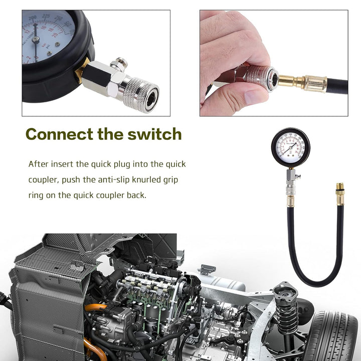 - ❤️【Multifunktion】Das kompresionsmessgeraet verfügt über alle erforderlichen Anschlüsse zum Anbringen an jede Art von Drucksystem. M10-Gewinde ist für Motorräder geeignet, M12 / M14 / M18-Gewinde sind für Autos geeignet. Kommt mit 2