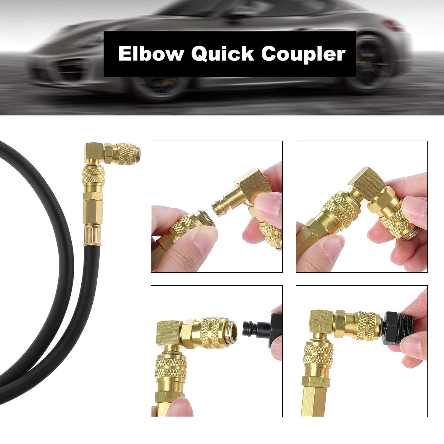 - 90-Grad-Schnellkupplungsadapter mit kleinem Profil und eingebautem Absperrventil. Messing-Schnellkupplungen zeichnen sich durch hohe Härte, Rostfreiheit, Langlebigkeit und gute Luftdichtung aus.