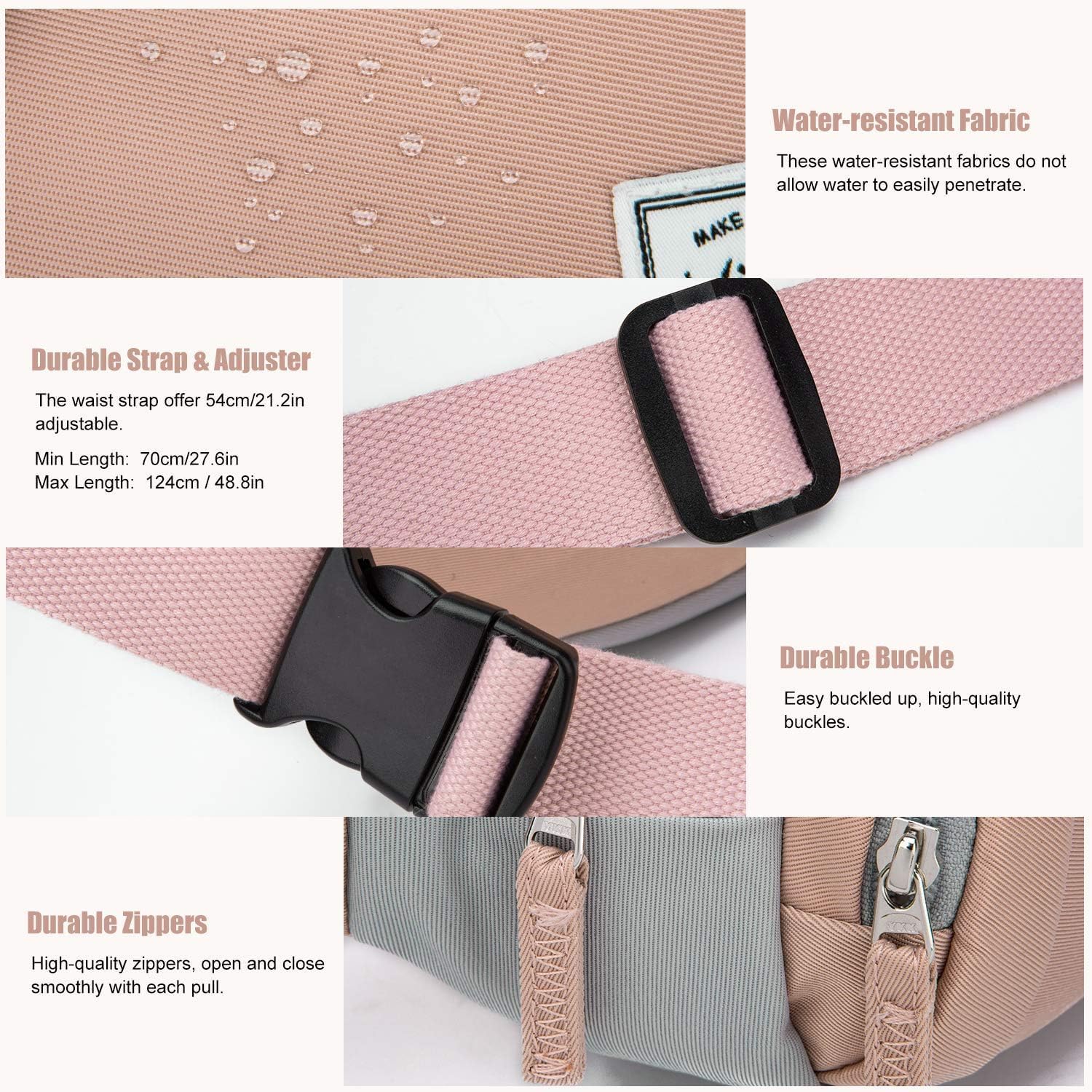 - [MEHRZWECK HÜFTTASCHE] Sie können die Länge des Hüftgurts mit der Schnellverschlussschnalle nach Ihren Wünschen einstellen. Es konnte nicht nur als bauchtasche, sondern auch als Brusttasche, Handtasche, gürteltasche und Doggy Bag verwendet werden